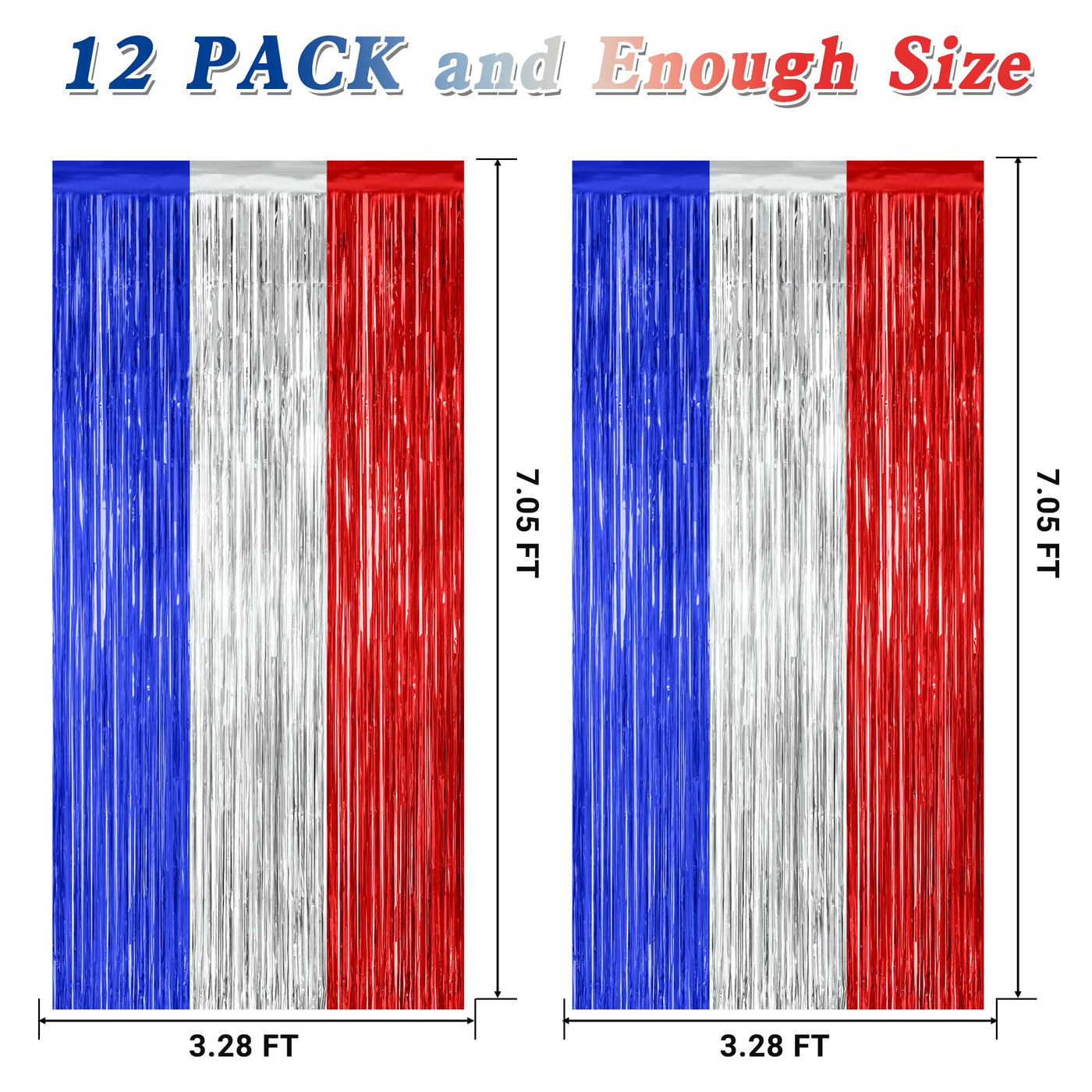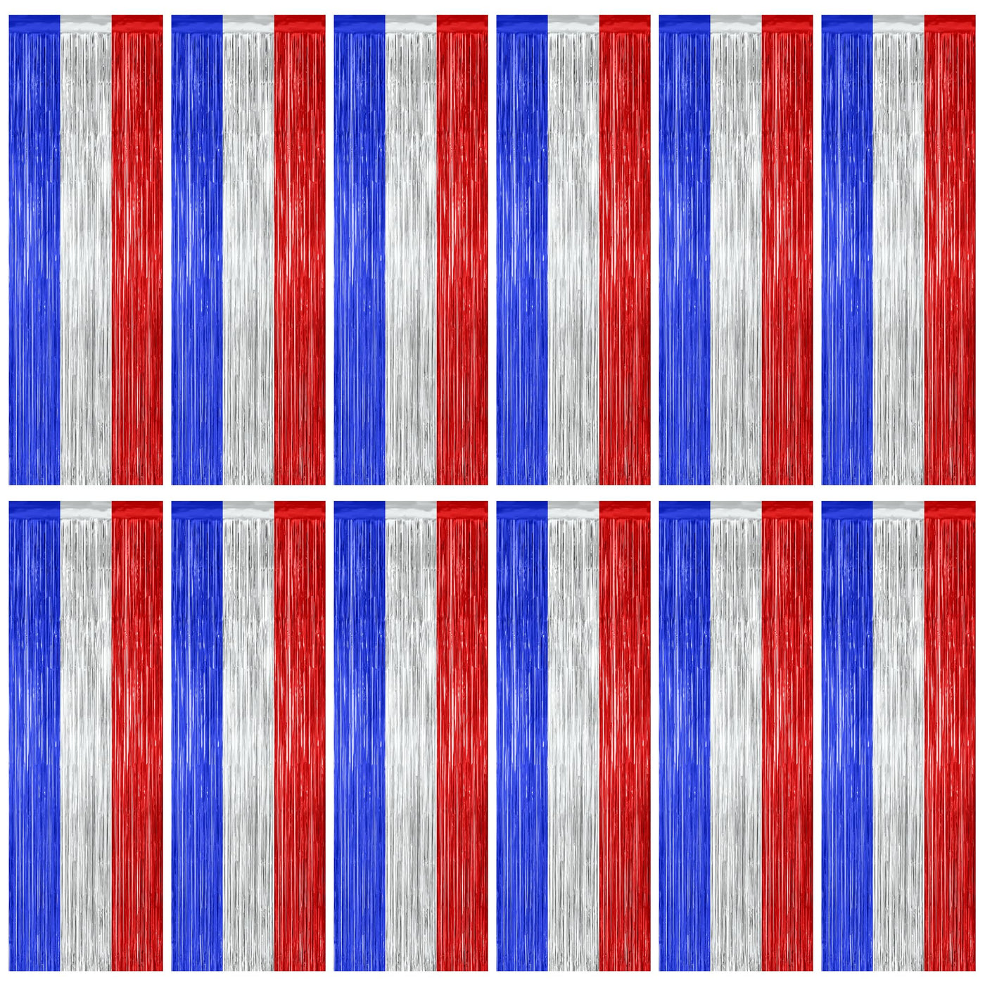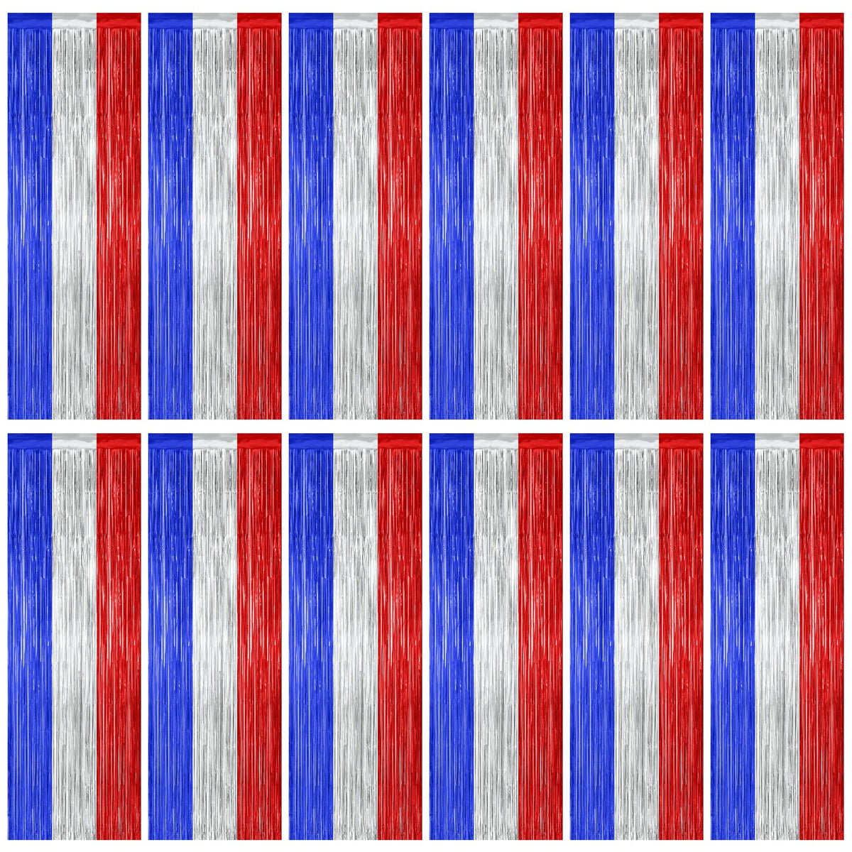 Celebrate 4Th Of July With These Blue Silver Red Foil Curtains! Quantity: 12 Pcs Size: 3.28 Ft X 7.05 Ft Colors: Blue Silver Red Design: Metallic Glossy Design Features: Large Size: Can Be Cut To Length As Needed Non-Tearable: 23 M Pet Material, Lightweight And Non-Tearable Easy To Install: Comes With Adhesive Tape, No Assembly Required Use Occasions: 4Th Of July, Patriotic Party Warm Tips: These 4Th Pf July Fringe Curtains Come With Adhesive Paper, But Please Do Not Stick Them On Rough And Uneven Surfaces.