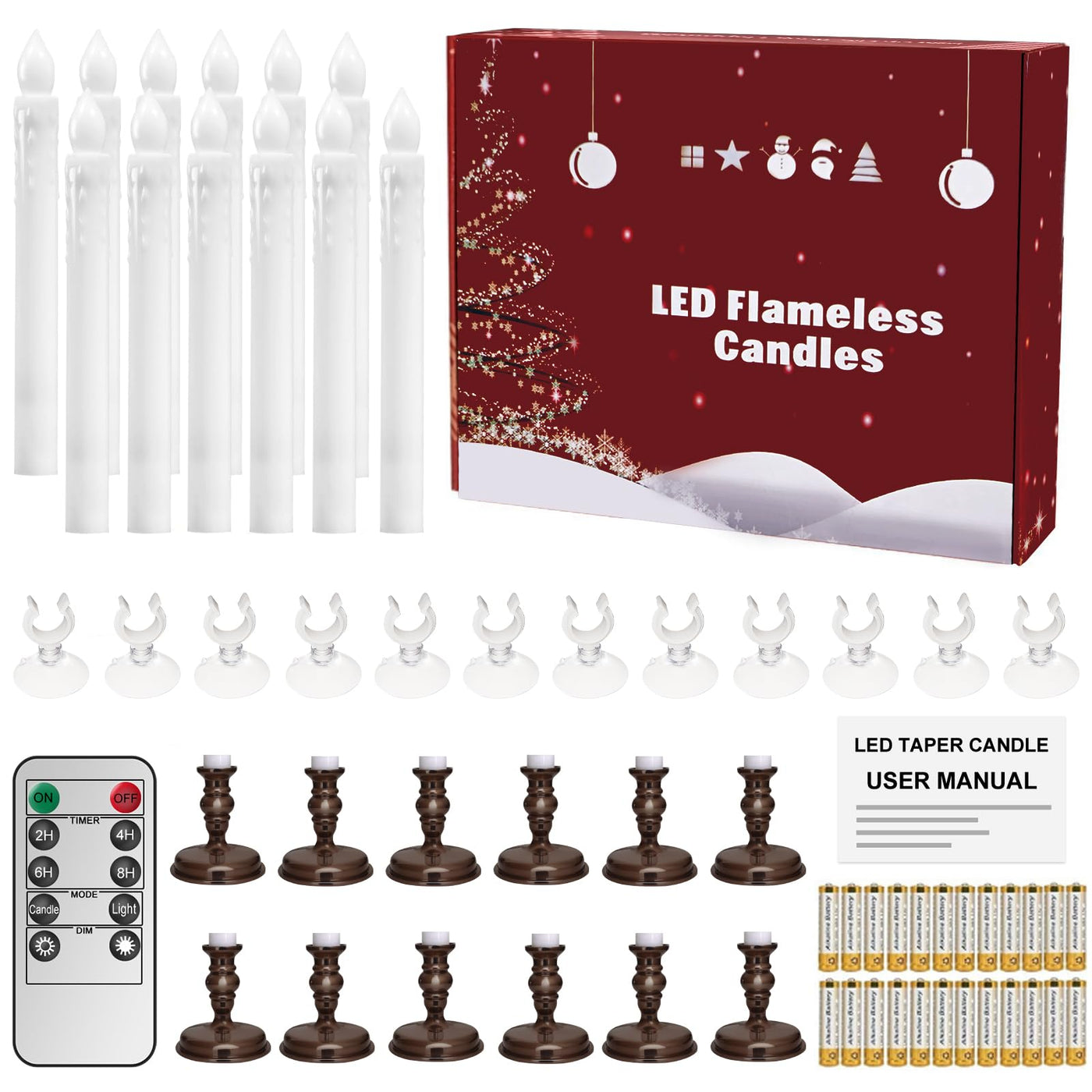 12 Pack Flameless Led Window Candles With Drip Texture, Removable Candle Holders, 24 Aaa Batteries, Daily Timer, On/Off Remote,