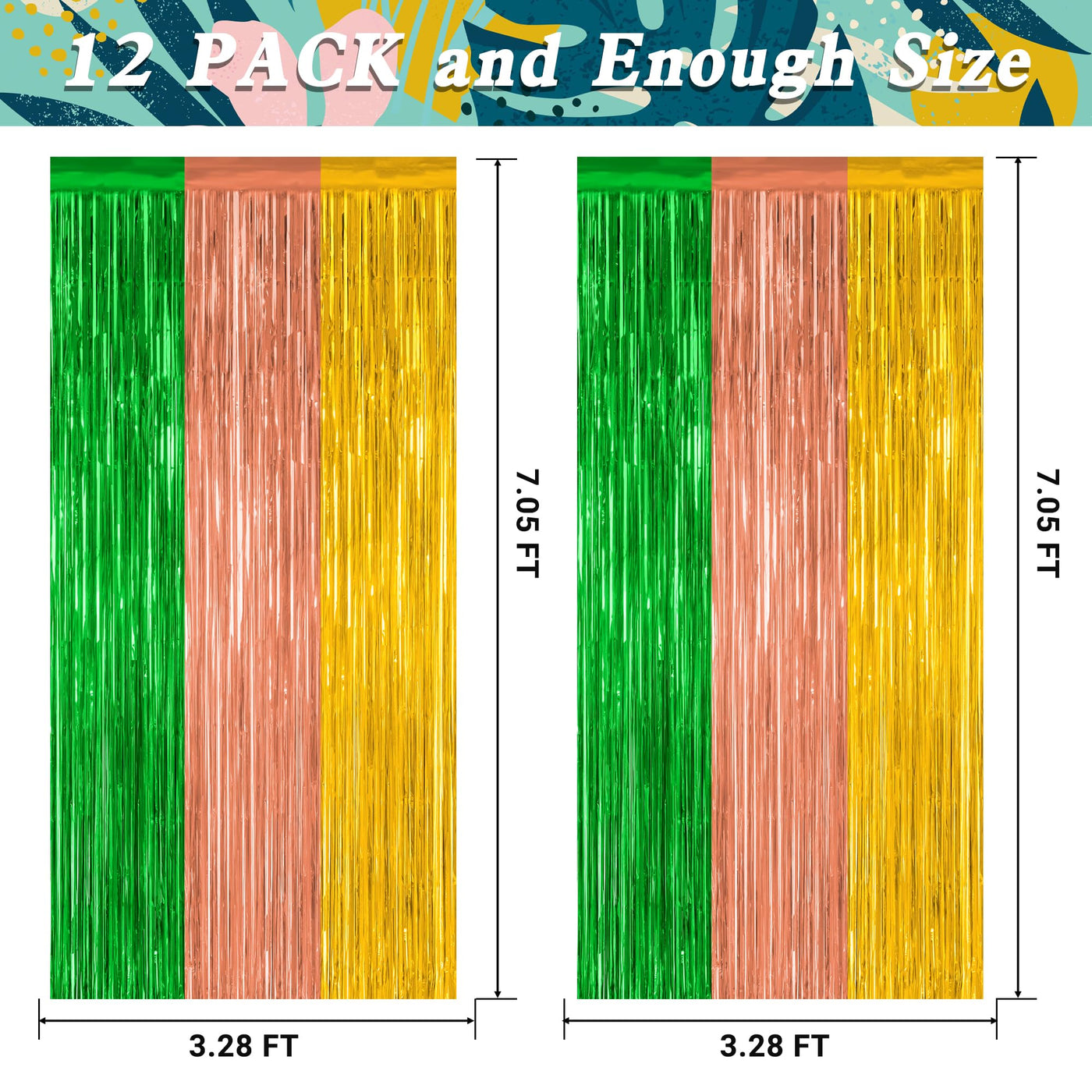 A Summer Of Fun With Zataye Hawaiian Fringe Curtains! Quantity: 12 Pcs Size: 3.28 Ft X 7.05 Ft Colors: Green Brown Yellow Design: Metallic Glossy Design Features: Large Size: Can Be Cut To Length As Needed Non-Tearable: 23 M Pet Material, Lightweight And Non-Tearable Easy To Install: Comes With Adhesive Tape, No Assembly Required Use Occasions: Hawaiian Party, Luau Gathering, Summer Party Warm Tips: These Luau Party Supplies Come With Adhesive Paper, But Please Do Not Stick Them On Rough And Uneven Surfaces.