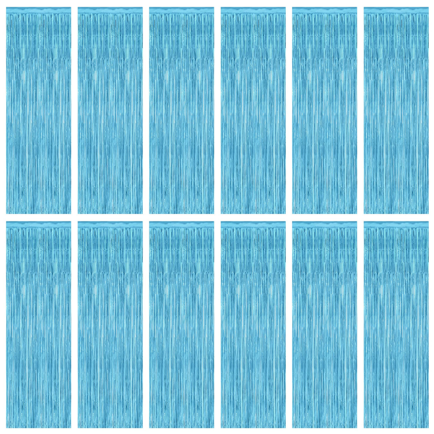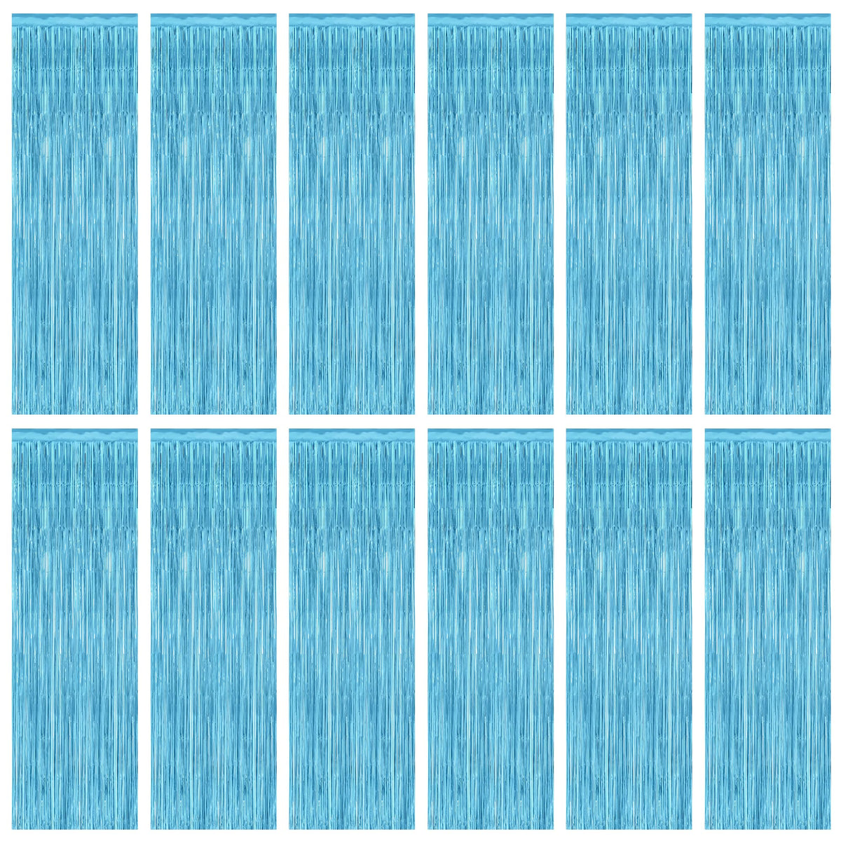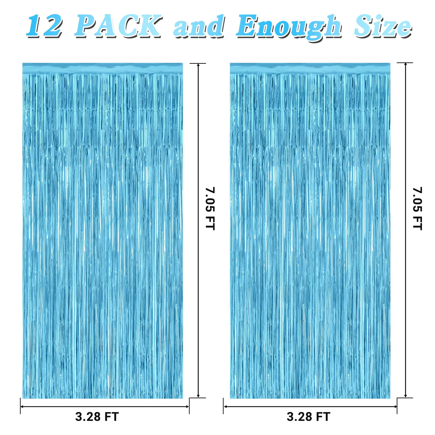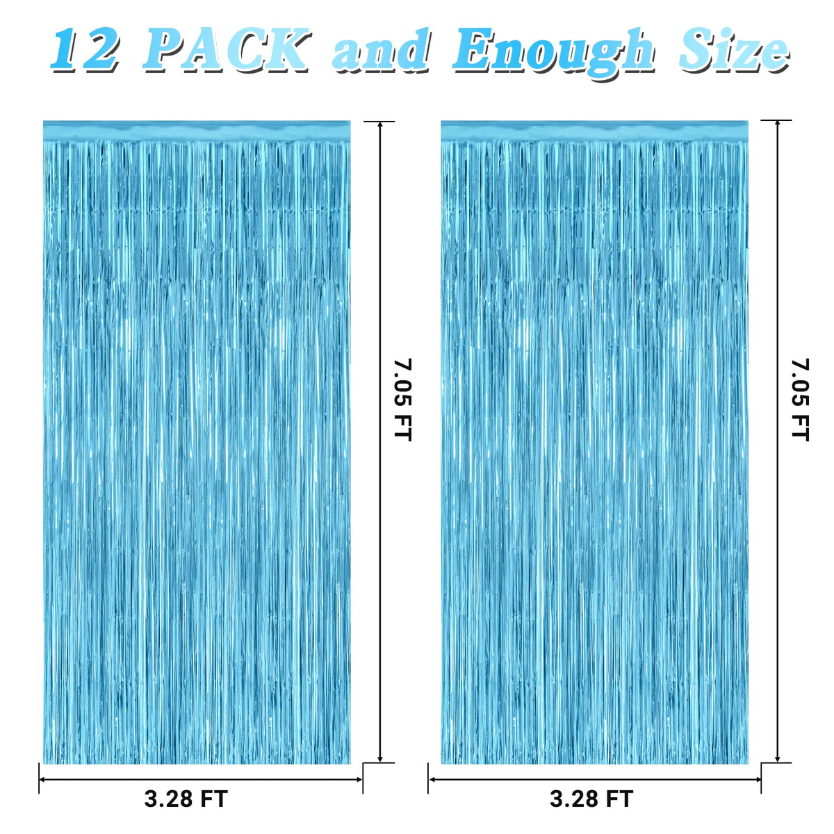 12 Pack Party Decorations, 3.28 Ft X 7.05 Ft Sky Blue Curtains, Metallic Party Streamers Photo Booth Backdrop Foil Fringe Curtai