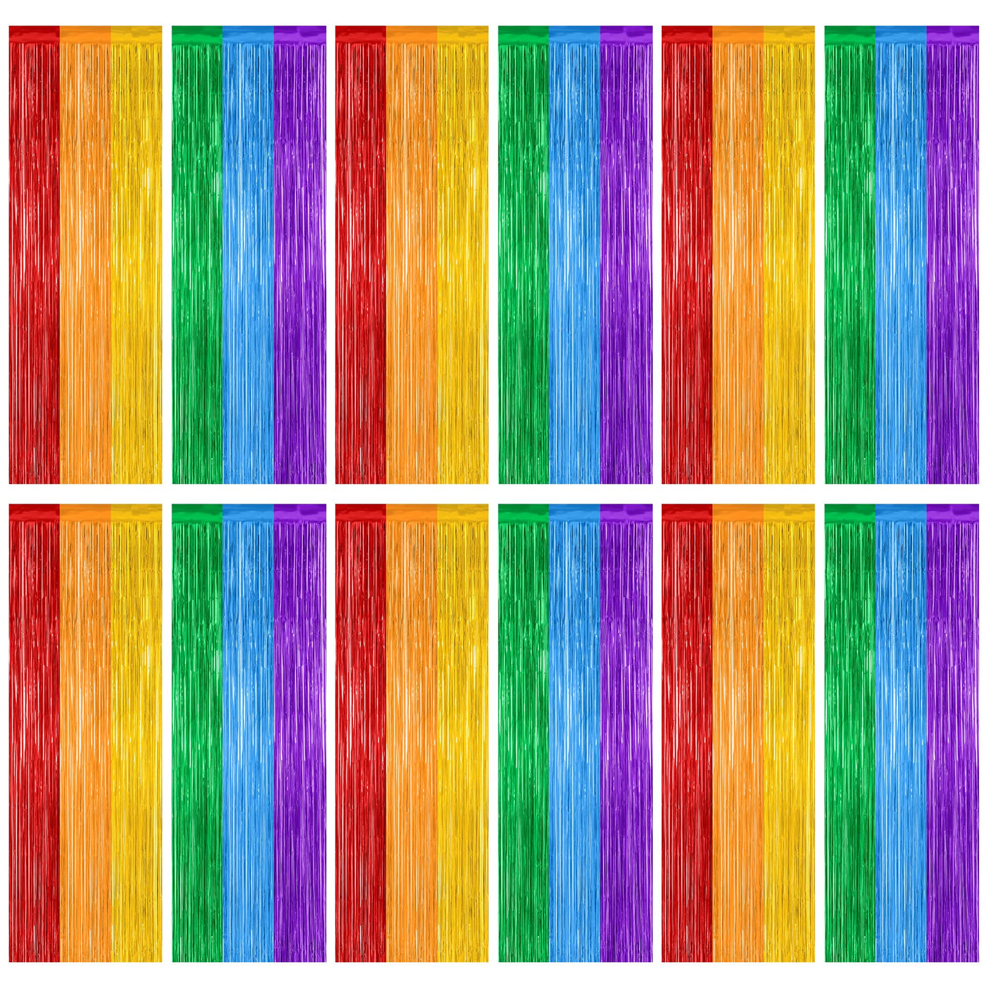 12 Pack Rainbow Backdrop, 3.28 Ft X 7.05 Ft Pride Decorations, Metallic Fringe Curtains Party Streamer Tinsel Backdrop, Rainbow