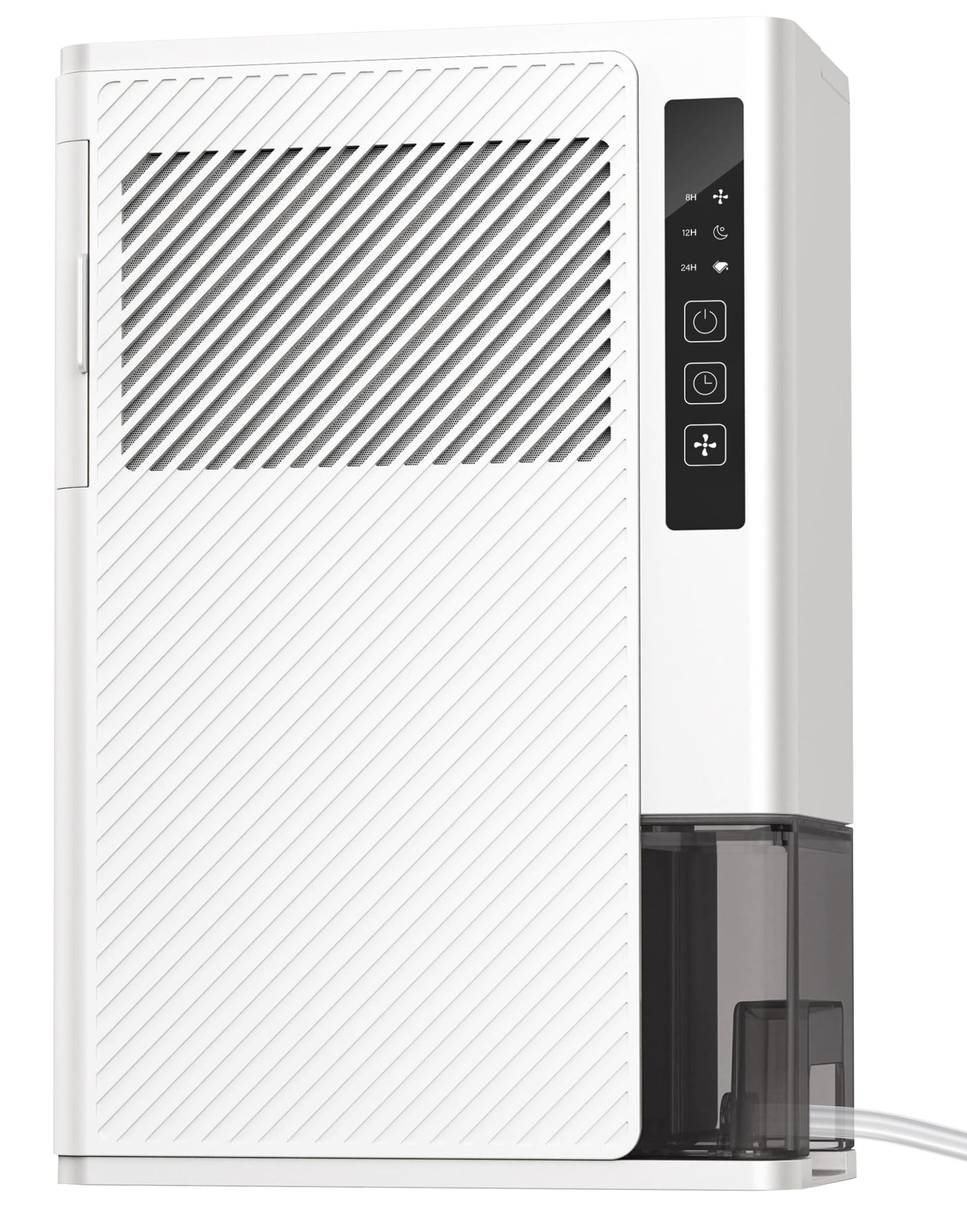 Q: What features make the AEOCKY dehumidifier user-friendly?A: The AEOCKY 10 Pint Dehumidifier includes an 85oz water tank, a convenient drainage hose for continuous operation, and a programmable timer with 8, 12, or 24-hour shut-off options, enhancing its usability and maintenance.