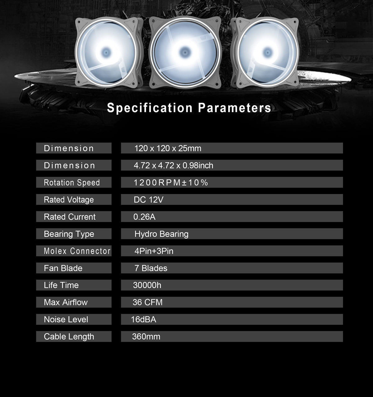 Q: Can I connect multiple 120mm cooling fans to a single interface?A: Yes, the fans come with 3-pin and 4-pin Molex connectors, allowing you to connect multiple units to one interface. This feature is particularly useful if you face plug shortages in your PC case.