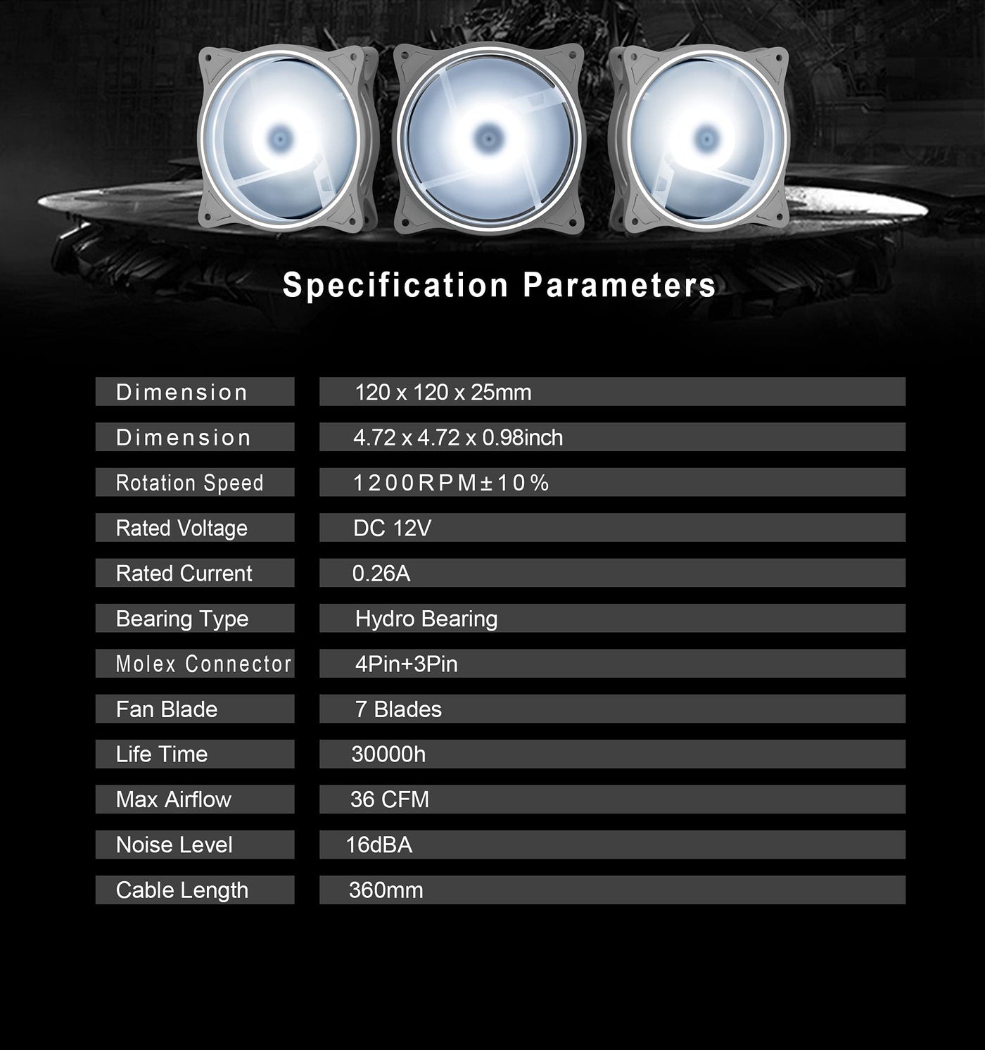 Q: What are the key features of the LED lighting on this cooling fan?A: The fan features a triple light loop with 26 bright independent quality LEDs. This design not only provides a unique aesthetic to your PC case but also enhances visibility, making it a great choice for gamers and PC enthusiasts who want to showcase their builds.
