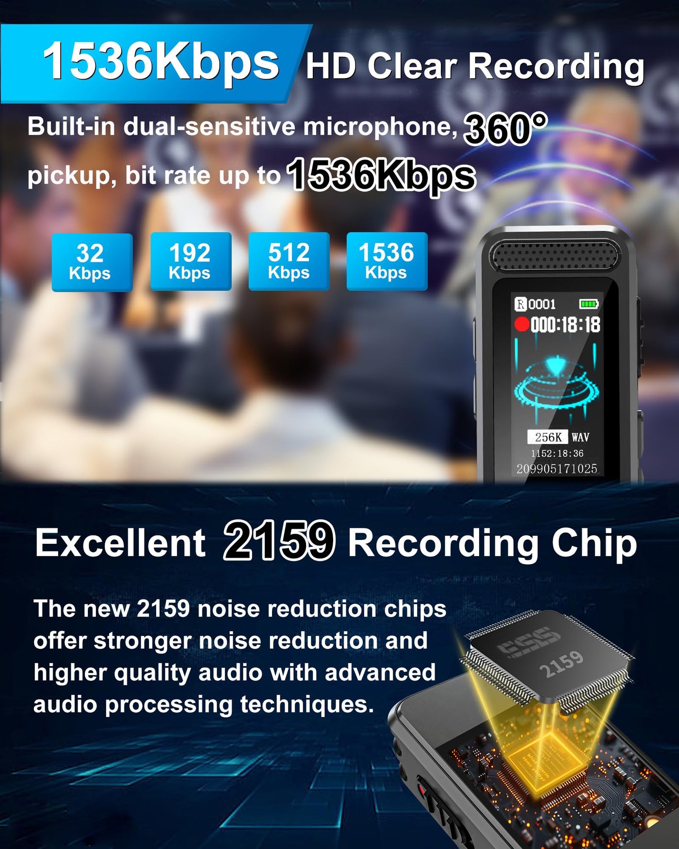 128Gb Mini Voice Recorder With 2159 Professional Noise Reduction And Up To 1536Kbps Lossless Sound Quality, Voice Activated Reco