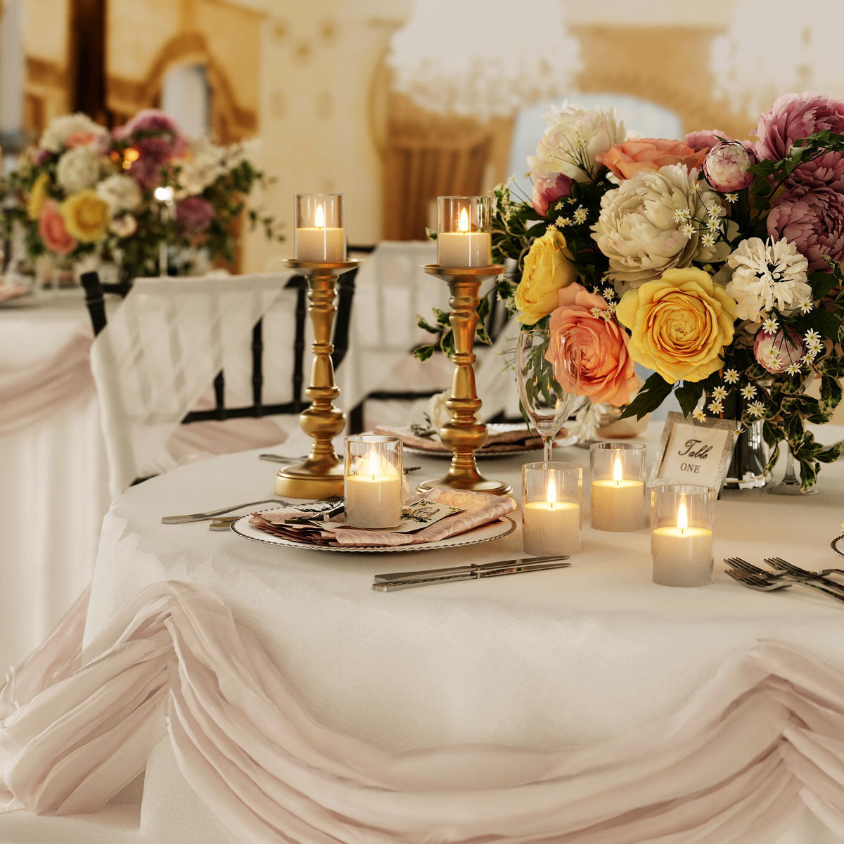 Q: What are some creative ways to use these candles for home decor?A: These flameless candles are perfect for various decorative scenarios, including wedding centerpieces, dining table arrangements, coffee tables, bookshelves, and holiday decorations for occasions like Christmas and Halloween.