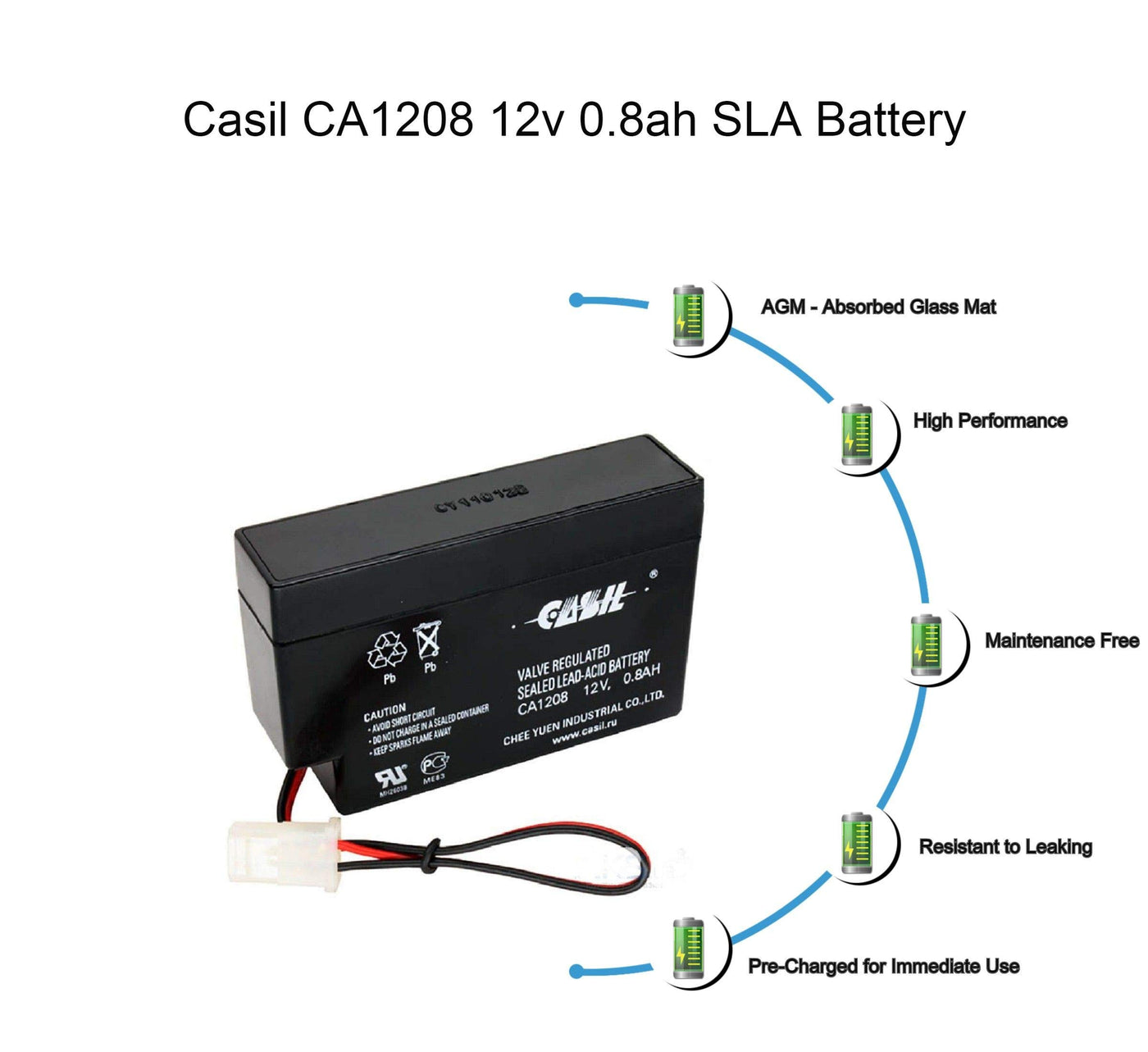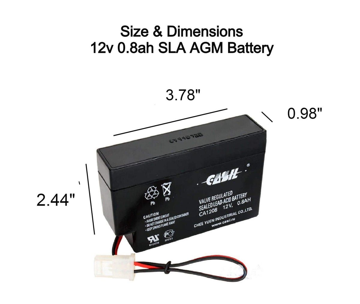 12V 0.8Ah Sealed Lead Acid Rechargeable Replacement Battery By Casil Ca1208