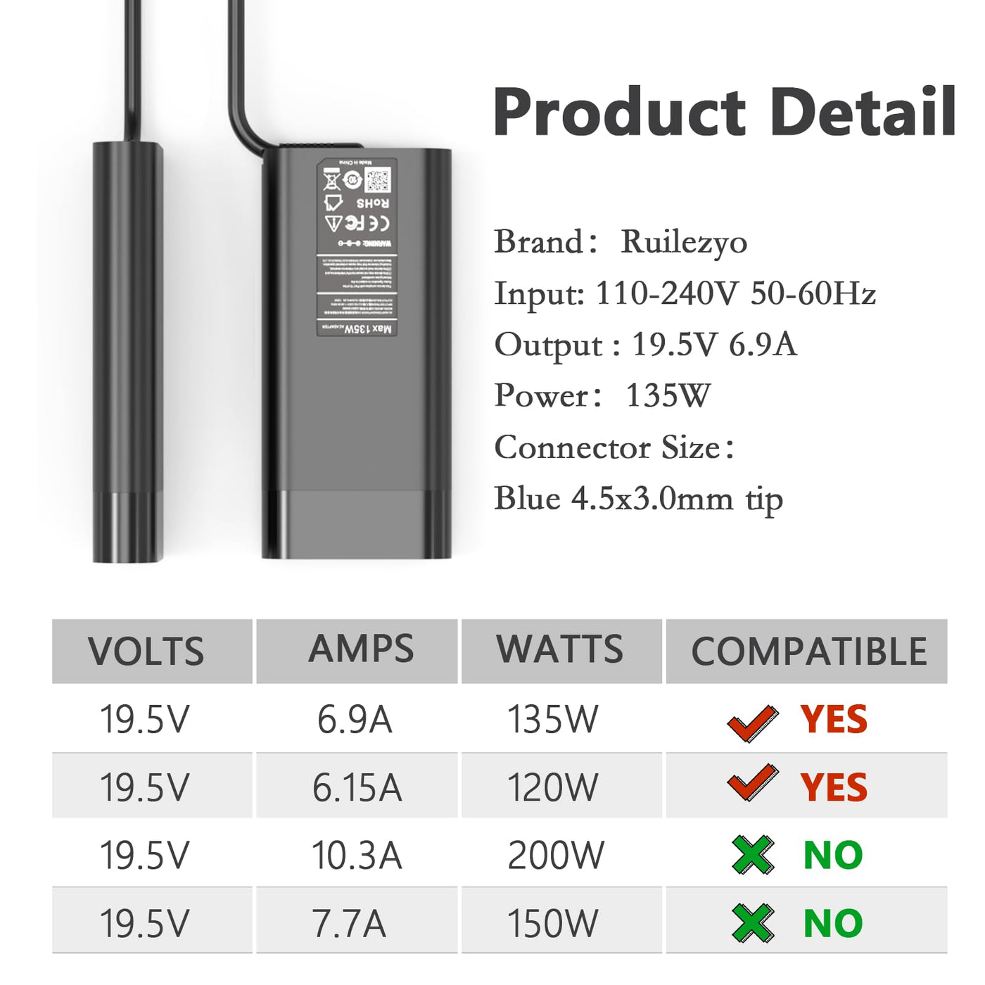 135W Laptop Charger 19.5V 6.9A For Hp Spectre X360 15 16 2-In-1 16T-F100 15T-Df100 15-Df000 16-F000 Business Laptop Hp Pavilion Gaming 15 17 15-Ec0Xxx 15-Cx0Xxx 15-Ec0751Ms L15534-001 Power Ac Adapter