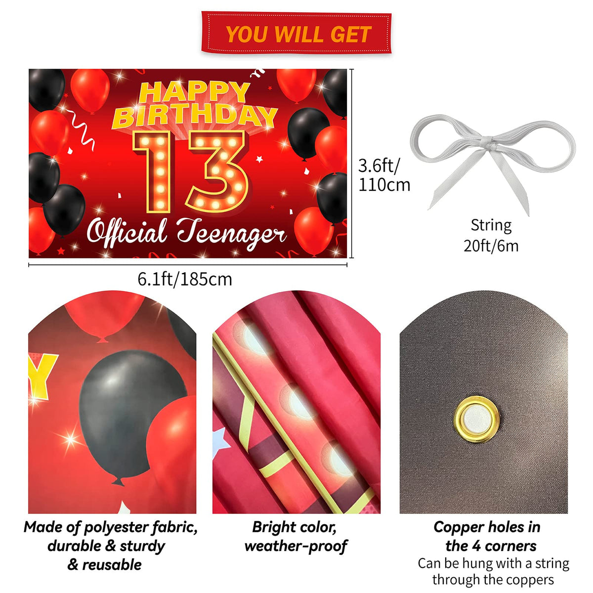 13Th Birthday Decorations For Boys Girls, Happy 13Th Birthday Backdrop Banner, Official Teenager Birthday Photo Booth Props Red,