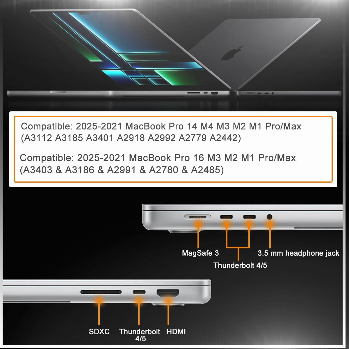 Q: What MacBook models are compatible with the 14 PCS Dust Plug Cover Set?A: The 14 PCS Dust Plug Cover Set is designed specifically for MacBook Pro 14 inch and MacBook Pro 16 inch models released in 2021, 2022, and 2023, including models A2918, A2779, A2780, A2442, and A2485 with M1 Pro, M1 Max, M2, M3 Pro, and M3 Max chips. It is not compatible with previous MacBook models.
