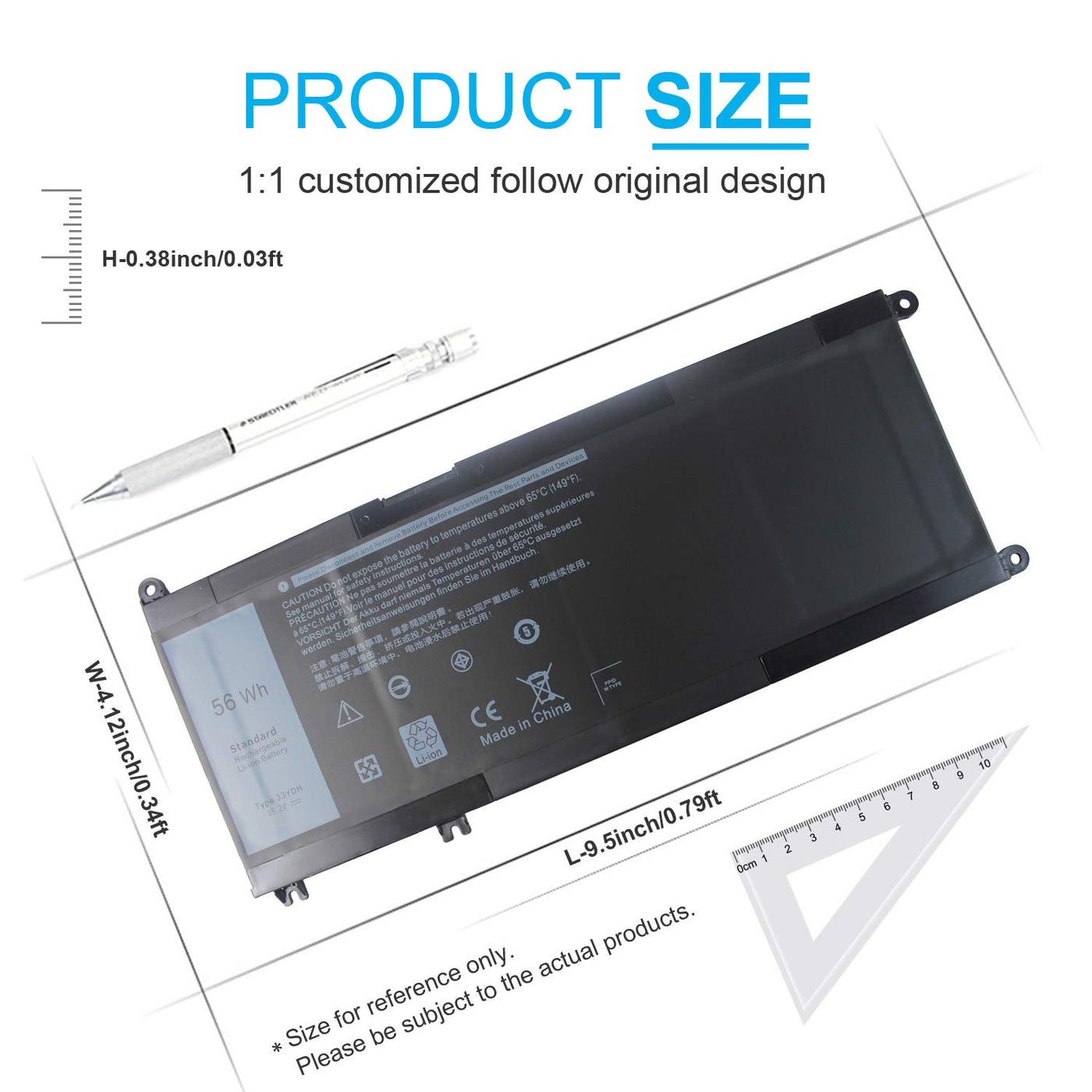Compatible Part Numbers: 56Wh 33Ydh 99Nf2 Pvht1 81Pf3 081Pf3 Dncwscb6106B P30E P30E001 Compatible Laptop Models: For Dell Inspiron 17 7000 Series 7773 7778 7779 7786 2 In 1 For Dell Inspiron 17-7773 17-7778 17-7779 17-7786 15-7577 For Dell Inspiron 17 7773 2-In-1 For Dell Inspiron 17 7778 2-In-1 For Dell Inspiron 17 7779 2-In-1 For Dell Inspiron 17 7786 2-In-1 For Dell Inspiron 15 7000 Series 7577 For Dell Inspiron 15 7577 For Dell G3 15 3579 Series For Dell G3 17 3779 Series For Dell G5 15 5587 Series For Dell G7 15 7588 Series For Dell Latitude 13 3000 3380 Series For Dell Latitude 15 3590 Series For Dell Latitude 15 3580 Series For Dell Latitude 14 3490 Series For Dell Vostro 15 7580 Series For Dell Vostro 15 7570 Series Specification: Battery Type: Li-Ion; Voltage: 15.2V; Capacity: 56Wh; Cell: 4-Cell; Condition: Brand New