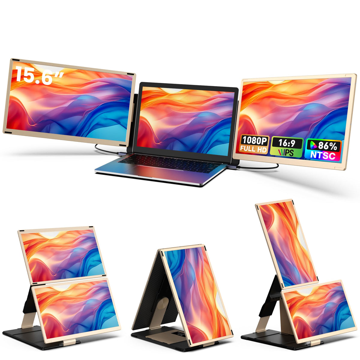 15.6 Laptop Screen Extender, Portable Triple Monitor For Laptop With 86% Ntsc Ips Fhd 1080P Display, Detachable Monitor Extender