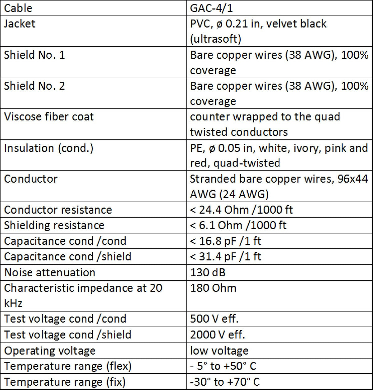 Q: What type of cable is used in the Gotham GAC-4/1 Star-Quad Stereo Headphone Extension Cable?A: The Gotham GAC-4/1 Star-Quad Stereo Headphone Extension Cable features a custom-made quad stereo cable utilizing Ultra-flexible, Star-Quad, 4-Conductor, Dual-Shielded Gotham GAC-4/1 cable, which is known for its superior RF-rejection and extensive shielding.