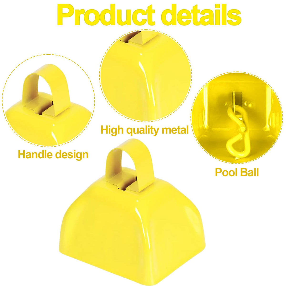 15 Pack 3 Inch Metal Cowbell Noisemaker Cheering Bell Yellow Cowbells For Sporting Events Bulk Loud Cow Bell With Handles, Small