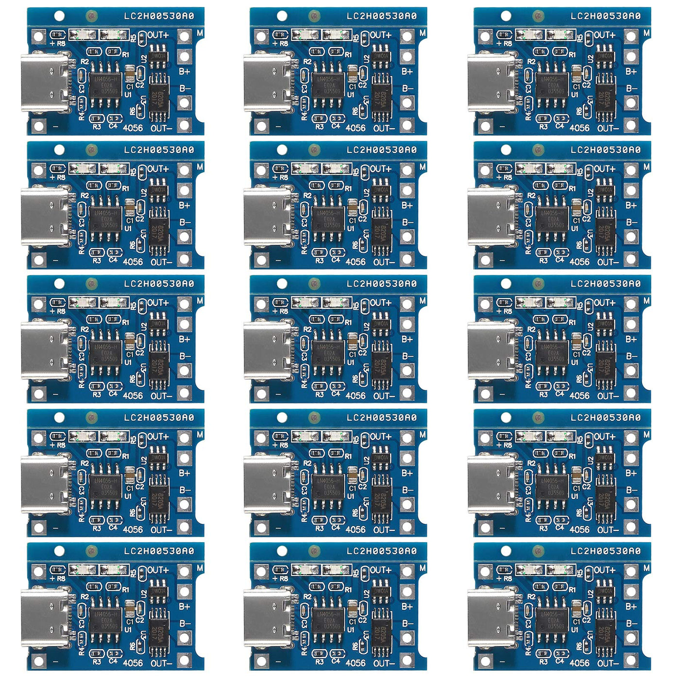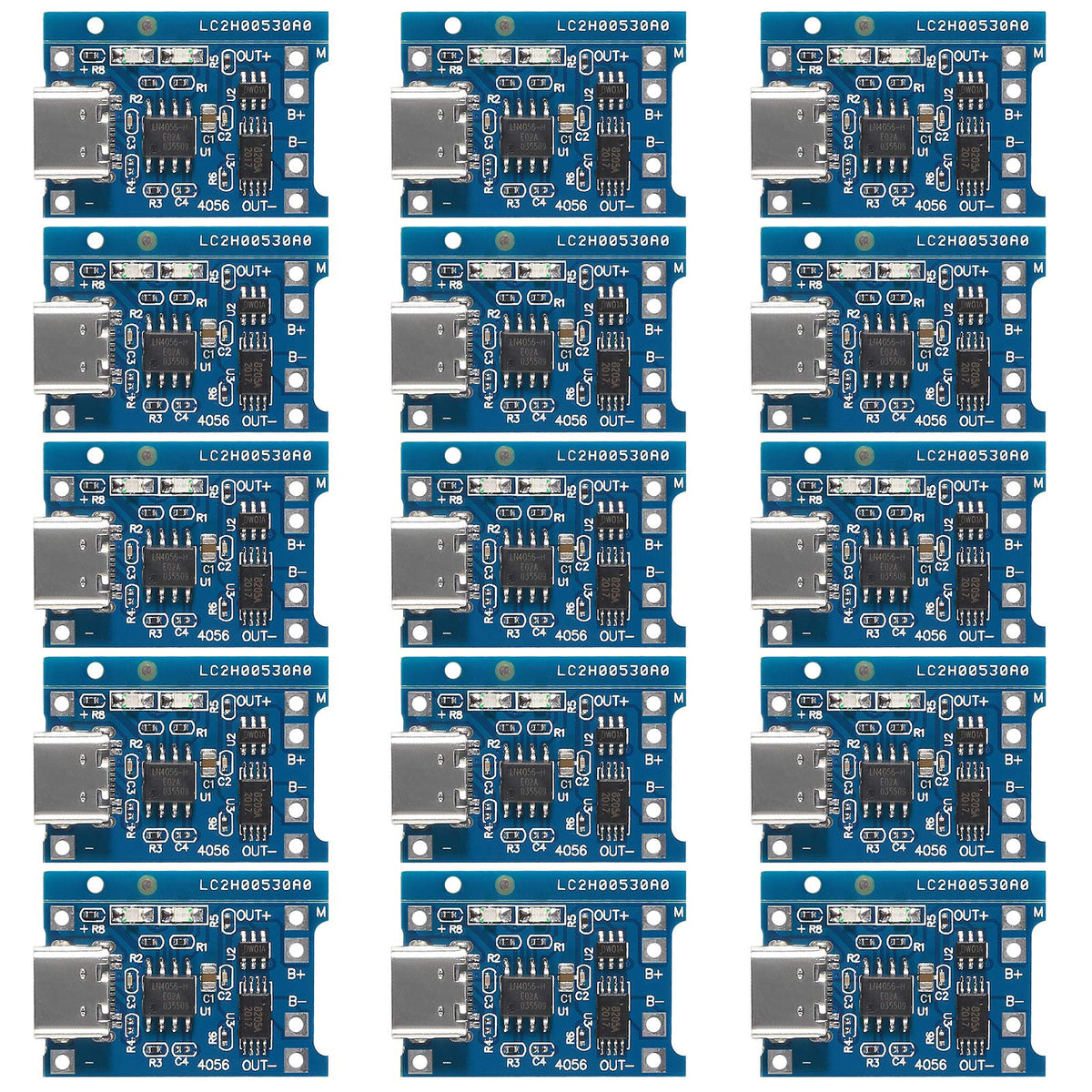 15Pcs 5V 1A Tp4056 Charging Module Type C Usb 18650 Lithium Battery Charger Board With Protection (Type C Usb)