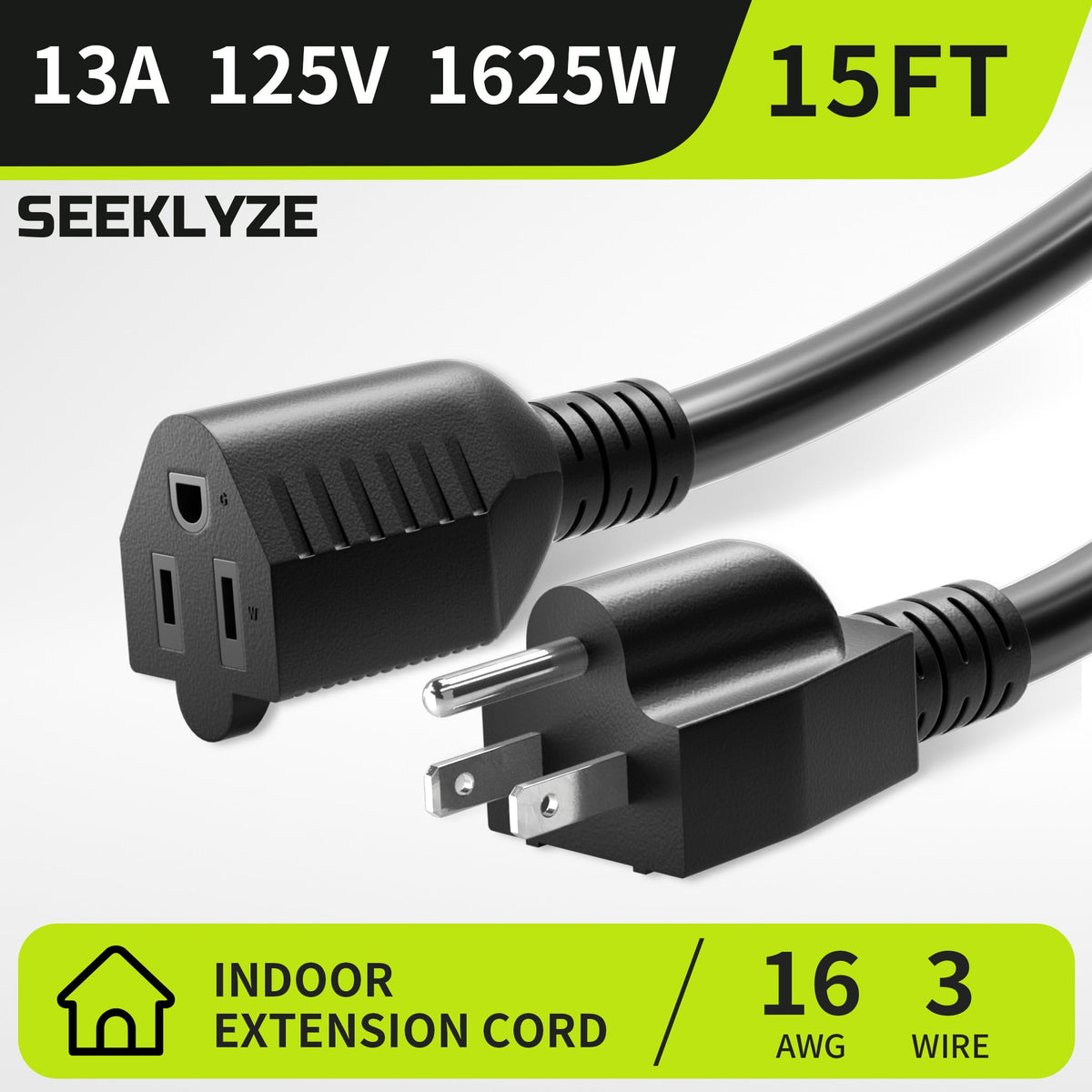 This 16Awg 15Ft-2Pc Extension Cord Is The Ideal Solution For Home And Office. Whether You Need A Stable Power Source For Vacuum Cleaner, Laptops Or Tv, This Flexible Black Extension Cord Will Meet Your Needs. Featuring High Quality Pure Copper Conductors To Ensure Safe And Reliable Use, The Nema 5-15P/R Configuration Makes For A Strong Connection, Making It An Indispensable Addition To Your Life