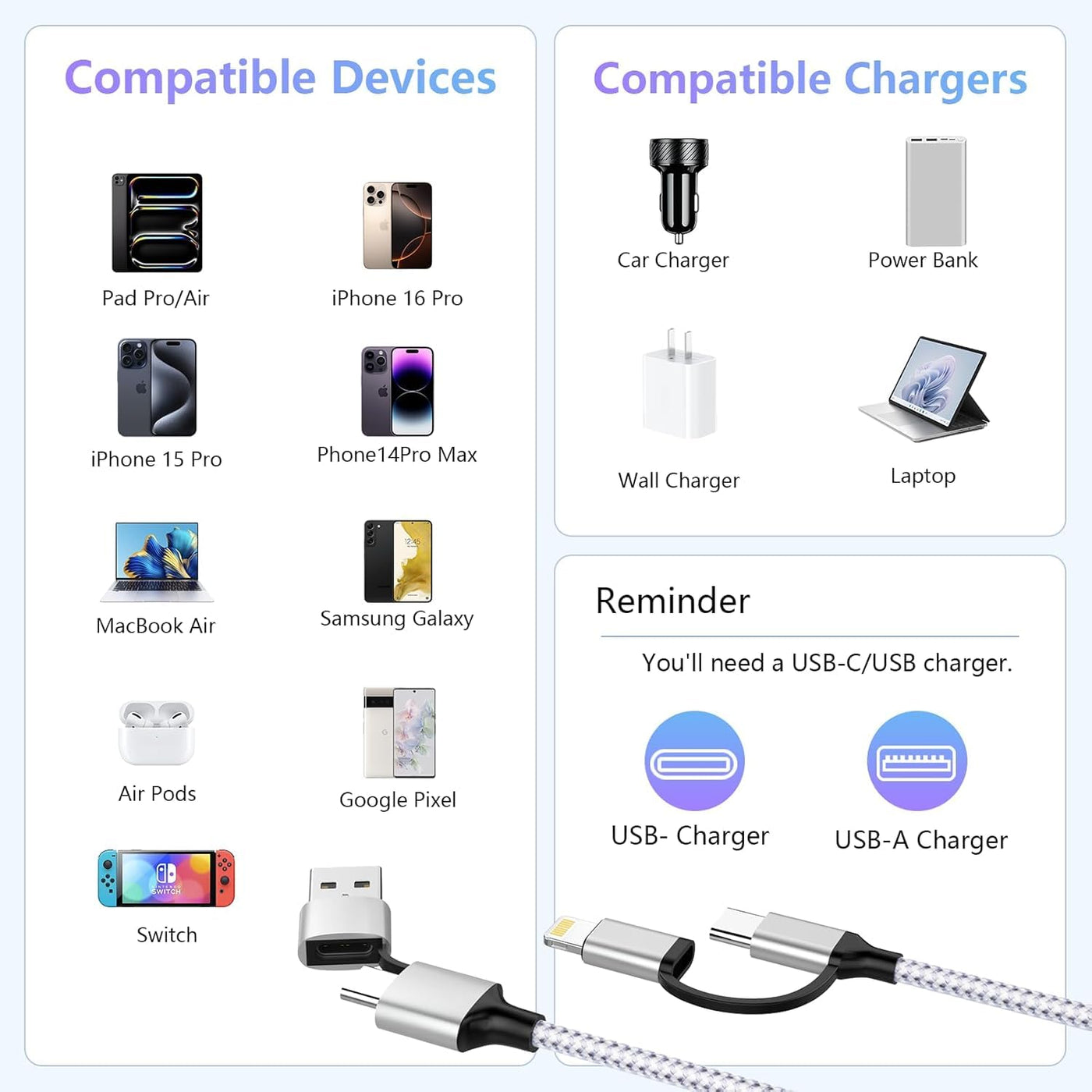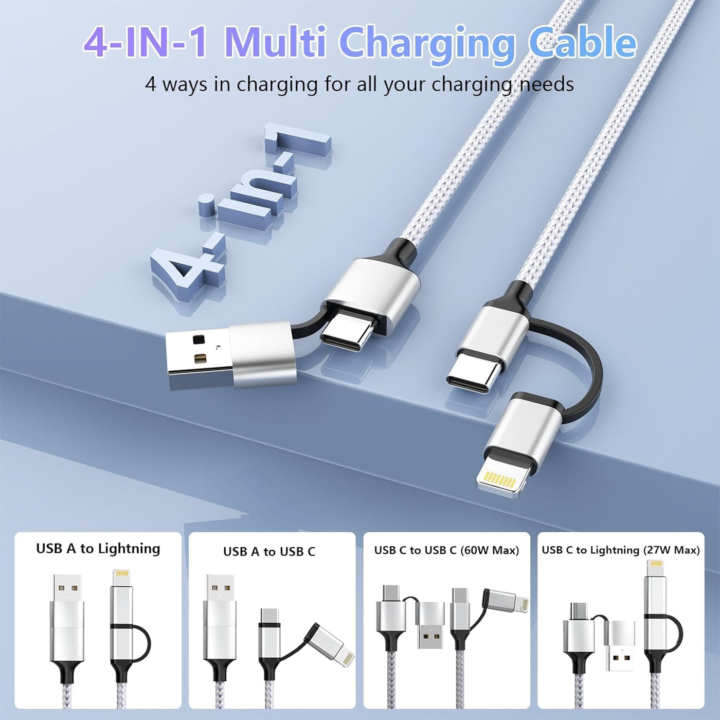16Ft/5M Multi 4 In 1 Usb C Cable Lightning Charging Cable,60W Fast Charger & Data Transfer,Iphone Ipad Charger Cord With Lightni