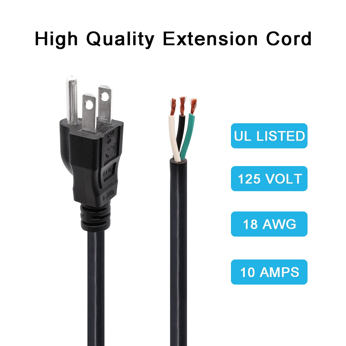 18 Gauge Replacement Power Cord,6.46Ft Cable 110V 115V 120V 125V 300V Pigtail For Appliance, Nema 5 15P Plug Us Sjt 18Awg (18/3)