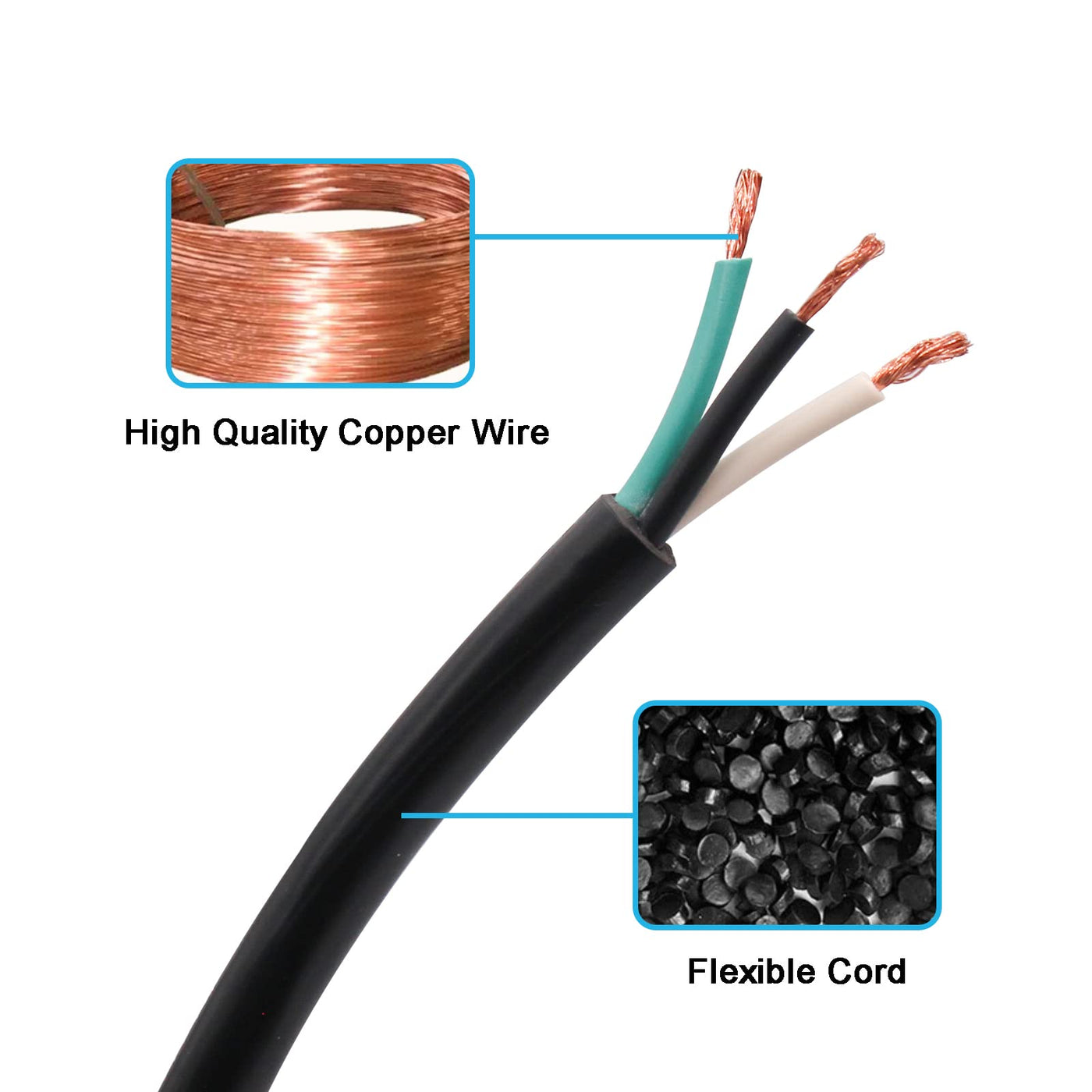 Q: What appliances are compatible with the Replacement Power Supply Cord?A: The Replacement Power Supply Cord is designed for various appliances including dishwashers, power strips, drills, fans, printers, and other devices that require custom wiring. Its NEMA 5-15P male plug makes it suitable for most standard household appliances.