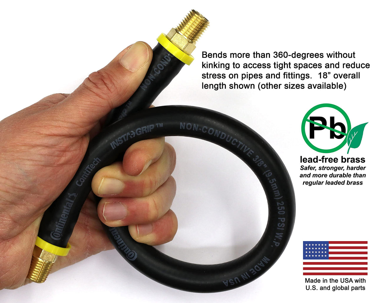 Use This Hard-To-Find Short Air Compressor Hose To Build Any Adapter For Your Air Compressor. It Is Also Suitable For Use In Water And Hydraulic Applications. The Insta-Grip Hose Is More Abrasion-Resistant, Durable, And Kink-Resistant Than Regular Air Compressor Hose. We Use Food-Grade Vegetable Oil Only In The Installation Process.Most Commercially Available Brass Fittings Contain Up To 8% Lead, But For Your Health And Safety, The Lead-Free Brass Fittings In This Item Have Been Tested By An Independent Testing Lab And Certified To Contain Less Than 0.25% Lead.