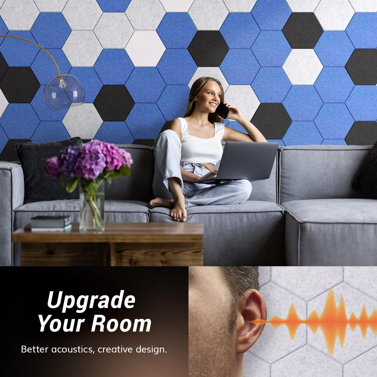 18 Pack Hexagon Acoustic Panels, Tonor 12 X 10 X 0.4 High Density Sound Proof Panels For Walls, Sound Dampening Insulation Trea