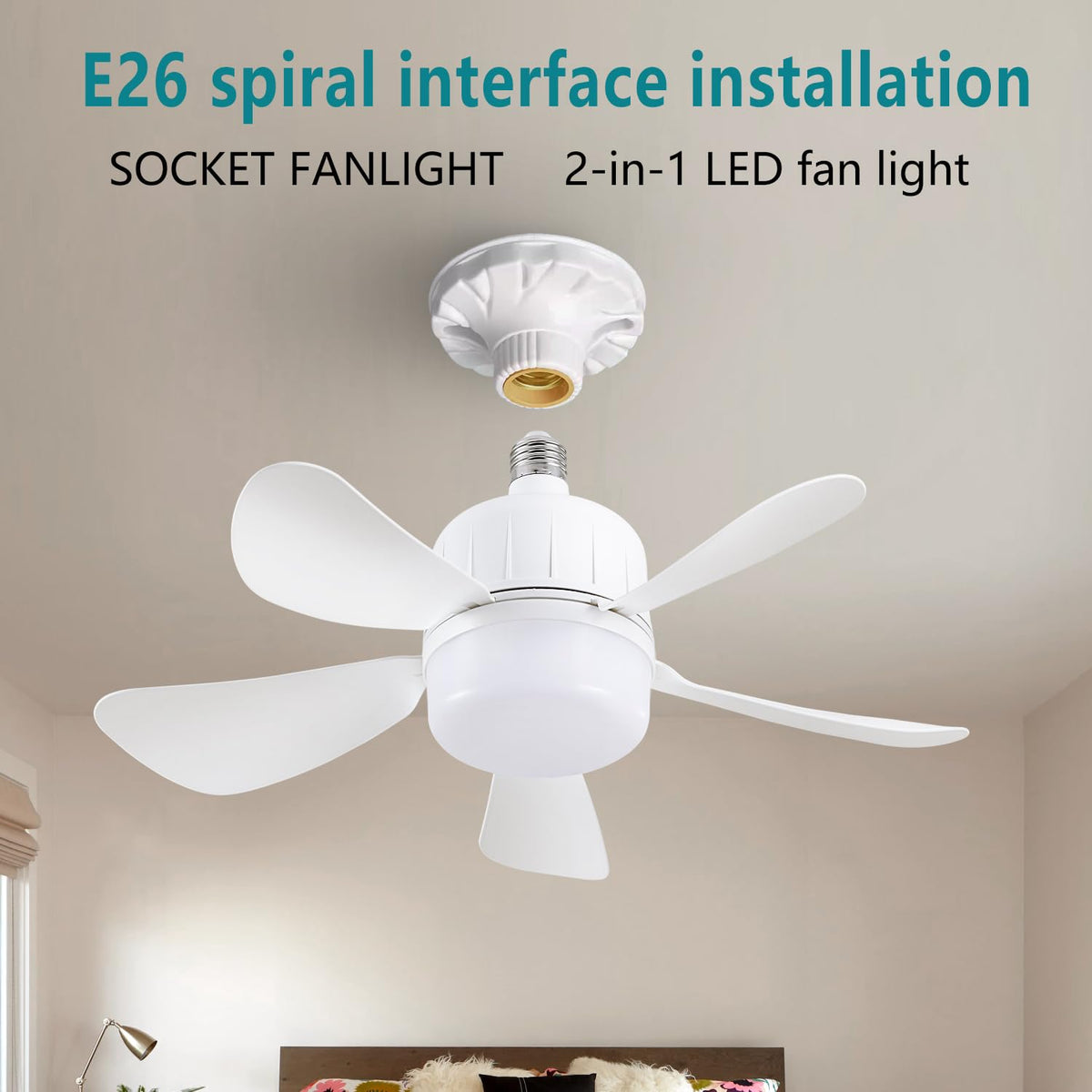 18-Inch Small Socket Fan Lights Upgrade Your Home With Our Modern Small Socket Fan Light, Perfect For Bedroom, Office, Garage, Kitchen, Farmhouse, Living Room, Hallways Or Other Small Indoor Spaces. This Socket Fan Is Designed To Bring Modern Style And Comfort To Your Home,Providing Both Coolness And Illumination. Key Features: Small Socket Fan Lights Low Profile Dc Motor With 3-Speed Options Replaceable Led Light With 3 Color Temperatures (3000K/4000K/6500K) And Adjustable Brightness (20%~100%) Remote Control With 3-Level Fan Speed, Light Color Temperature Selection, And Timer (1H/2H/4H) Sleep Shutdown Easy Installation With Complete Accessories And Detailed Instructions Quiet Operation With Noise Level Less Than 35 Db Applications: This Ceiling Fan Is Perfect For Year-Round Use, Whether Its The Hot Summer Or Cold Winter. Its Ideal For Indoor Spaces Such As Bedroom, Office, Study, Kitchen, Garage, Living Room, Hallways, And More. Advantages: Our Socket Fan Light Offers Many Advantages, Including: Modern Design And Sleek Appearance Powerful Airflow And Adjustable Light Settings Easy Control With Remote Quiet Operation And Energy Efficiency Easy Installation And Maintenance Warranty And Support: We Provide A 1-Year Warranty And 24-Hour Technical Support For Our Ceiling Fan With Light. If You Have Any Issues, Please Feel Free To Contact Our Support Team, And We Will Give You A Satisfactory Reply. With Our Commitment To Customer Satisfaction, You Can Buy With Confidence.