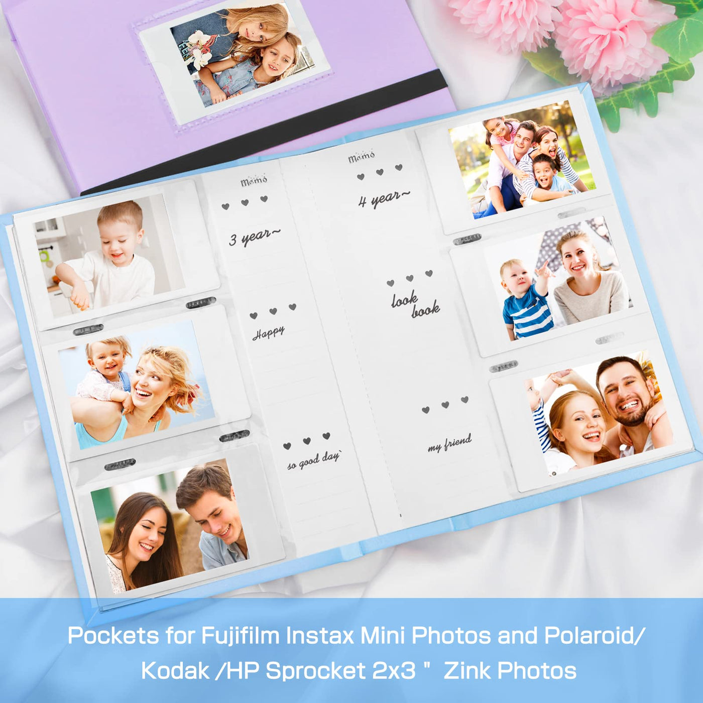 Photo Album For Fujifilm Instax Mini Camera, 180 Pockets Mini Album With Memo Areas, 2X3 Photo Album For Polaroid 2X3 Mini Camera/Fujifilm Instax Mini 1112 9 8 40 Evo Instant Camera