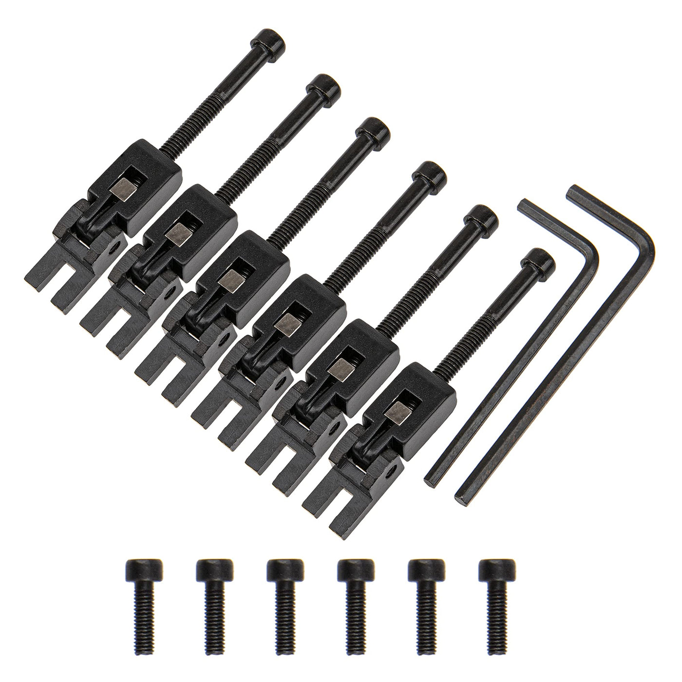 The Tremolo Bridge Saddles Is Compatible With The Floyd Rose Tremolo Bridge. String Saddles Help Prevent String Breakage, Improving Tone And Sustain And Keeping Your Guitar In Tone. The Guitar Hardtail Bridge Is Suitable For Guitar Lovers, Beginner Practicing. Nice Part For Guitar Lovers To Diy Guitar Size: As The Picture Shows Product Specification: 100% Brand New Material: Metal Color: Black Weight: 116G Package Content: 6 X Locked String Saddles 6 X String Lock Screws 2 X Wrench Note: 1.If You Are Not Satisfied With Our Product You Received, You Can Send Emails To Us At Any Time. We Will Reply You Instantly And Help You Solve Your Problem. Key Product Features. 2.Due To Different Monitors, There May Be A Little Color Difference.