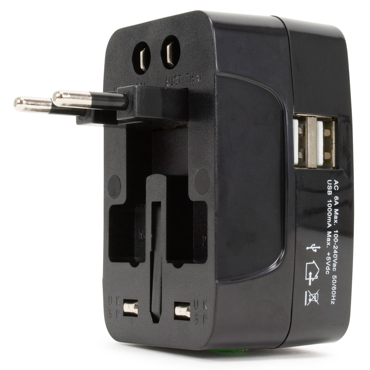 19V69 Italia International Travel Adapter With Two Usb Ports (Black)
