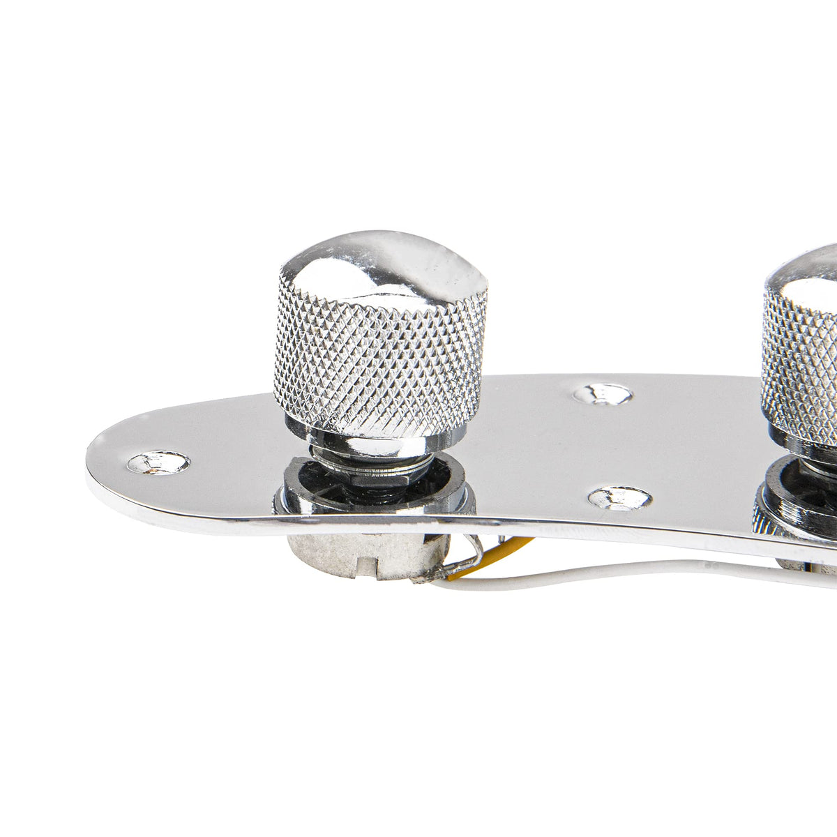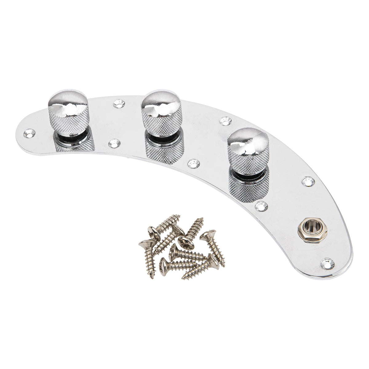 1Pcs Yootones Prewired Bass Switch Control Plate Wired Loaded Control Plate With Switch Knob Compatible With Electric Bass (Silv
