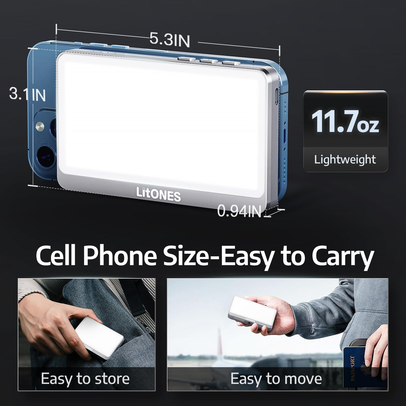 Q: What materials are used in the construction of the LitONES Zoom Lighting?A: The LitONES Zoom Lighting is constructed with high-quality materials, and it contains lithium-ion batteries for power. It is designed for durability and effective heat dissipation.