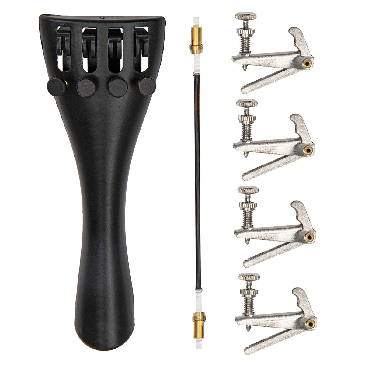 The Violin Tailpiece Kits Are Compatible With 4/3 - 4/4 Violin Instrument. 3 In 1 Design, The Kits Includes Violin Tailpiece & Tailpiece Rope & Tuners, They Are Nice Replacement For The Broken Or Old Ones. They Can Meet Your Needs Better. The Aluminum Alloy Tailpiece Equipped With 4 Tuner, Very Convenient To Tone Tuning. Design Of Each Tailpiece Has Been Carefully Managed For The Player Acoustically And Ergonomically. Product Specification: 100% Brand New Material: Metal + Plastic Violin Tailpiece Size: Appox.113 X 41.5Mm Tailpiece Rope Size:12Mm Fine Tuners Size: 27 X 21Mm Color: Black + Silver Weight: 46G Package Content: 1 X Violin Tailpiece 1 X Tailpiece Rope 4 X Fine Tuners Note: 1.If You Are Not Satisfied With Our Product You Received, You Can Send Emails To Us At Any Time. We Will Reply You Instantly And Help You Solve Your Problem. Key Product Features. 2.Due To Different Monitors, There May Be A Little Color Difference.