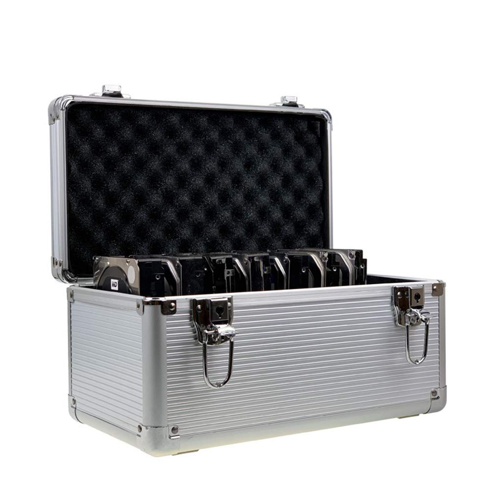 Five Star Home For Hard Drives Features: Space For 8X3,5 And 6X2,5 Inch Hard Disk Aluminum And Eva Material Handheld Design 2 Security Lock External Dimensions: 315 * 165 * 165Mm (L * W * H) Weight: 1,2 Kg Product Details Aluminum Surface, Internal Hard Paper Aluminum Bar Reinforcement 8 Corners Fixed With Iron Sheet 3.5 Inch Slot Dimension: 10.8 (L) X 14.5 (H) X 2.7 (W) Cm 2.5 Inch Slot Dimension: 7.2 (L) X10 (H) X1 (W) Cm What Includes 1 X&Nbsp; Protection Suitcase 2 X Keys