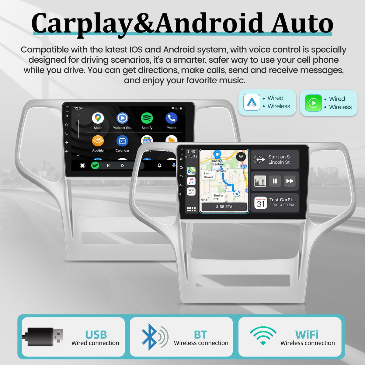 2+64G Android 13 Car Stereo For Jeep Grand Cherokee 2008 2013 Wireless Apple Carplay & Android Auto, 9 Inch Car Radio With Wif