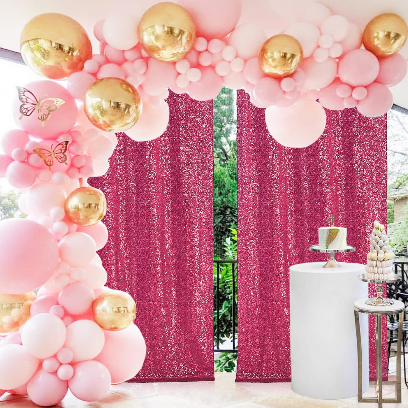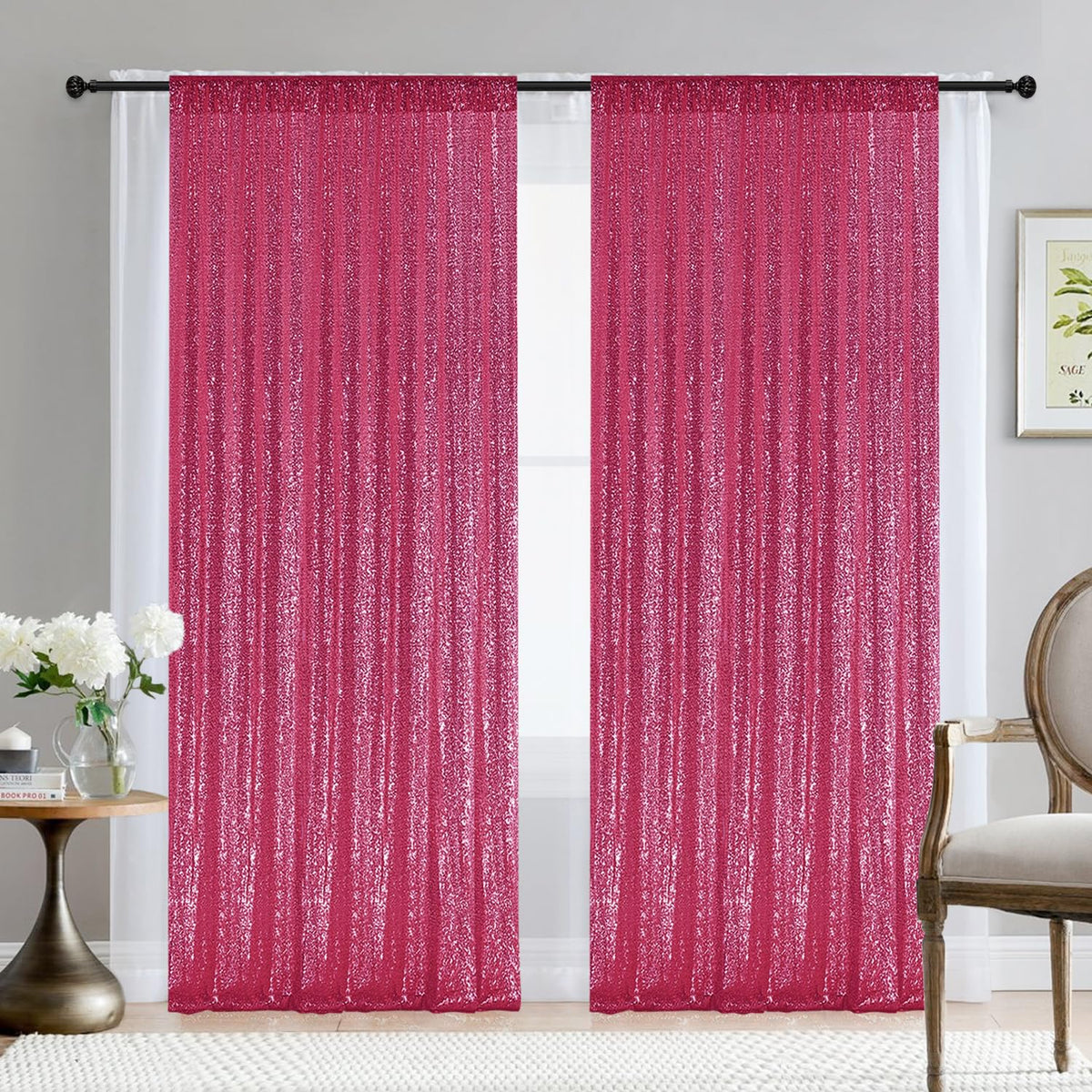 Q: What occasions are these sequin curtains best suited for?A: The Hot Pink Sequin Backdrop Curtains are perfect for a variety of occasions, including weddings, bridal showers, baby showers, birthday parties, and festive events like Christmas and Thanksgiving.