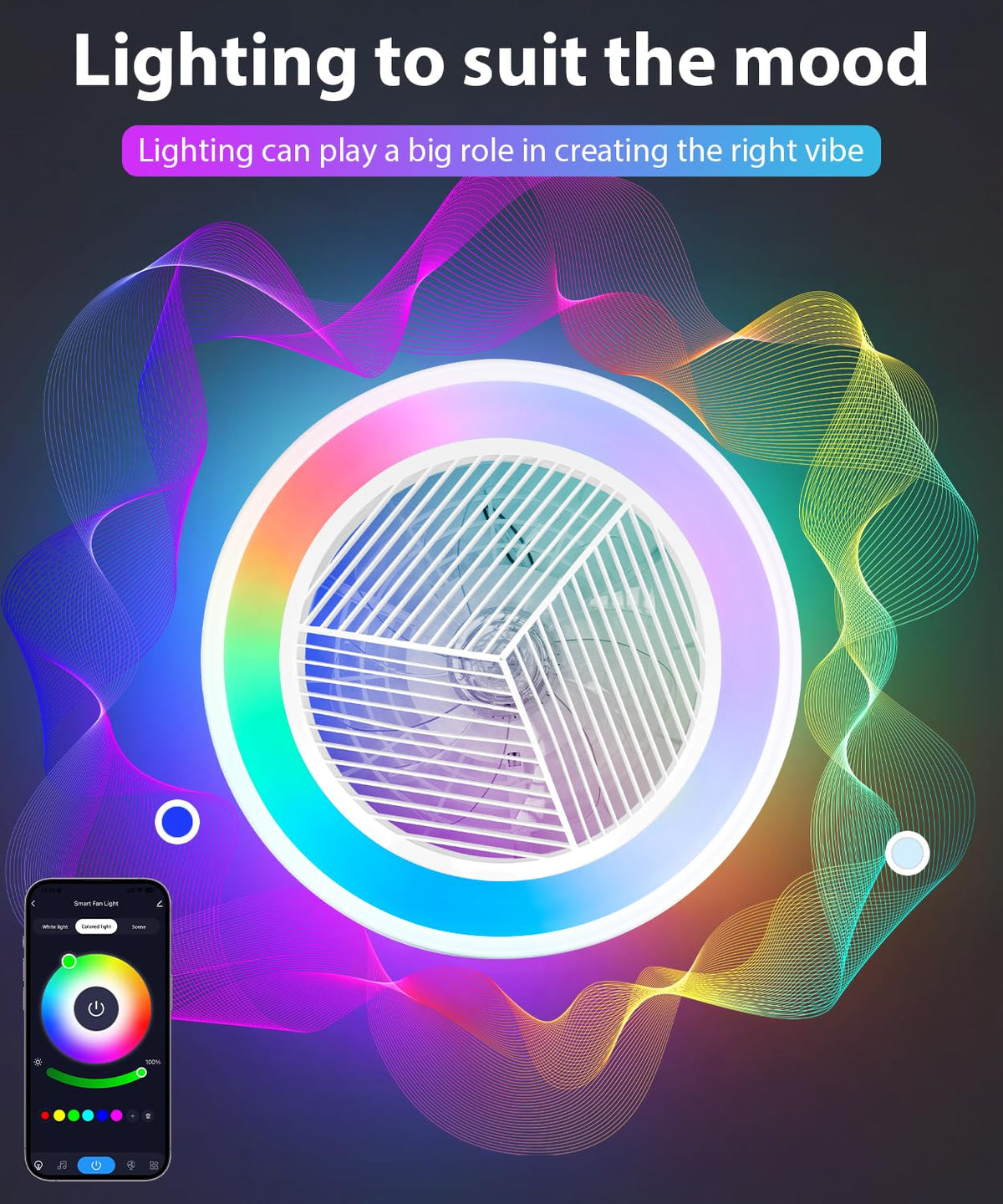 2-In-1 Low Profile Ceiling Fan With Light, 20 Caged Safety Design For Kids - Rgb Color, Smart App/Remote Control, Quiet Flush