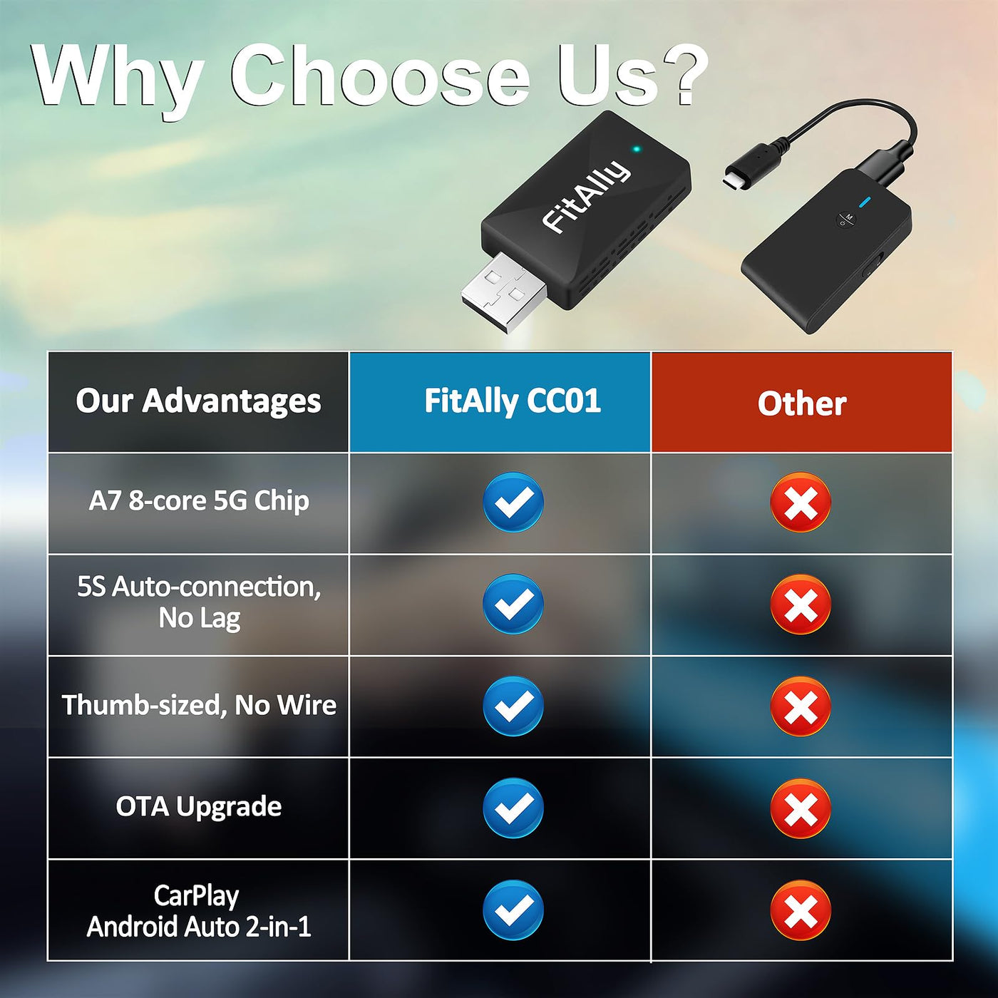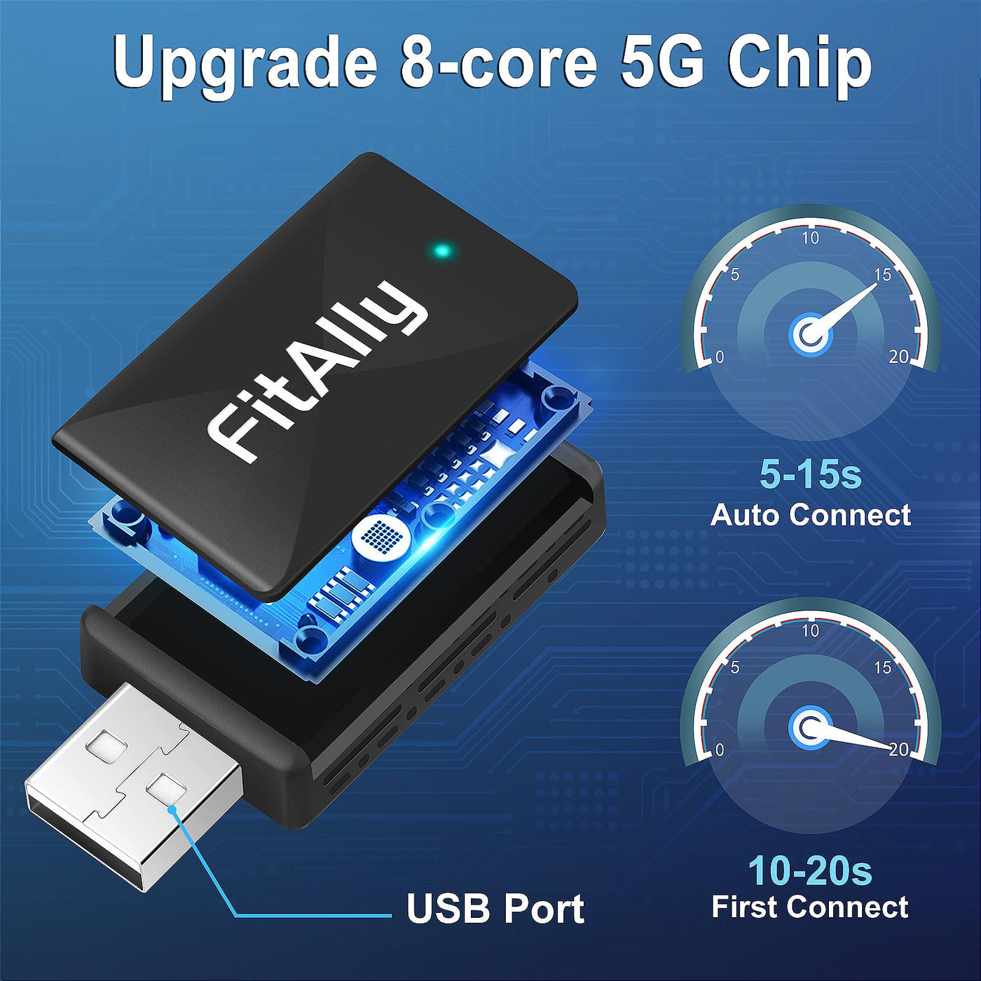 Introducing Fitally Wireless Carplay And Android Auto Adapter For Factory, Designed To Enhance Your Driving Experience Like Never Before. Supports The Conversion Of Wired Carplay To Wireless Carplay And Wired Android Auto To Wireless Android Auto. With Its Easy Plug And Play Installation And Automatic Connection, You Can Enjoy The Full Range Of Carplay Features Wirelessly And Without Any Hassle. With Compatibility With More Than 800 Car Models, You Can Rest Assured That Our Adapter Will Fit Seamlessly Into Your Car'S Existing Setup.Plus, With Our Advanced 5.0Ghz Stable And Fast Connection, You Can Seamlessly Control Your Favorite Apps, Providing You With Unparalleled Entertainment On The Go.