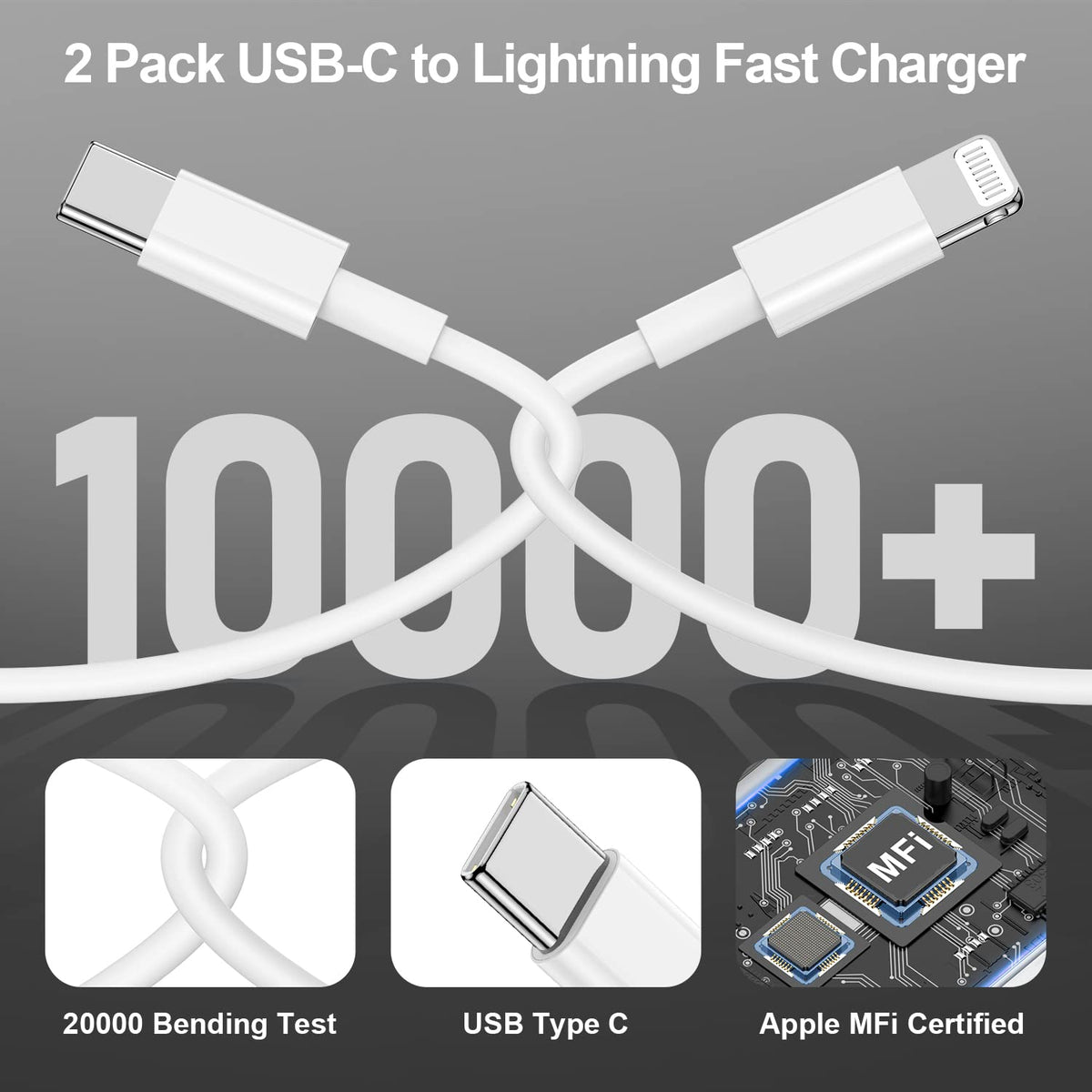 2 Pack Usb C To Lightning Cable [Apple Mfi Certified],Type C Fast Charger Cable 6Ft For Iphone 14 13 12 11 Pro/Pro/Max/Mini/Iphone Se