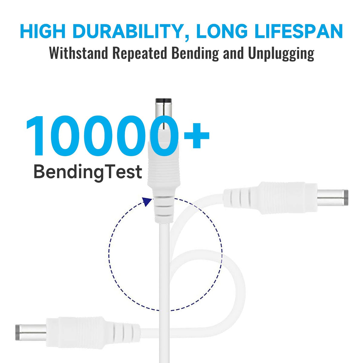 Q: How can I extend the reach of my power supply with this cable?A: You can extend the reach of your power supply by connecting two or more of these DC extension cables together. This allows you to cover longer distances to reach your installation spot, ensuring your devices receive adequate power.