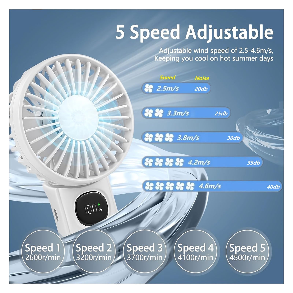 This Mini Handheld Fan Has A Small And Compact Design, Making It Easy To Carry And Use Anywhere. It Has Three Different Modes Of Operation: Foldable Handheld, 90-Degree Tiltable, And Hanging. The Small Fan Has A Powerful Motor That Provides Strong And Consistent Winds, Making It Ideal For Personal Use, Office Use, And Travel. The Mini Fan Has A Built-In Rechargeable 2400 Mah Battery That Provides A Long Battery Life, Allowing You To Use It For 10 Hours On End Without Having To Recharge. The Portable Fan Is Equipped With A 5 Speed Regulation Design, 5 Adjustable Wind Speed Can Be Switched With One Click. Keeps You Cool And Comfortable Whether You'Re Working, Sleeping Or Relaxing. The Foldable Fan Also Has A Digital Display That Shows The Speed Of The Fan And The Remaining Battery Life, Making It Easy To Monitor The Performance Of The Fan. The Travel Fan Is Made Of High-Quality Materials And Is Designed To Be Durable And Long-Lasting. It Is Easy To Clean And Maintain, And Is A Great Addition To Any Home Or Office.