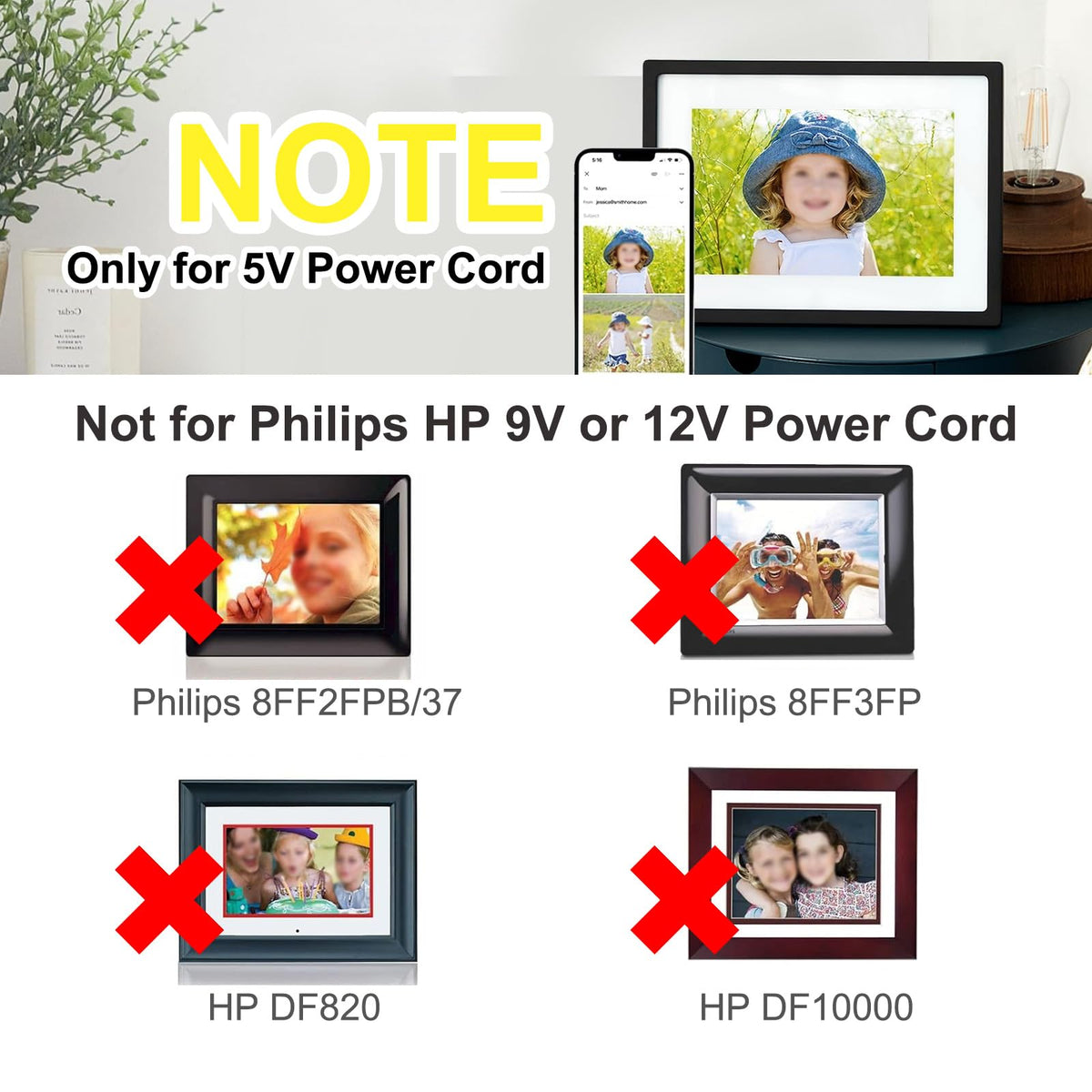 2 Pack 5V Ac/Dc Digital Picture Frame Power Cord Compatible With Philips, Hp, Skylight, Nix, Aluratek, Bsimb, Feelcare Charger Adapter