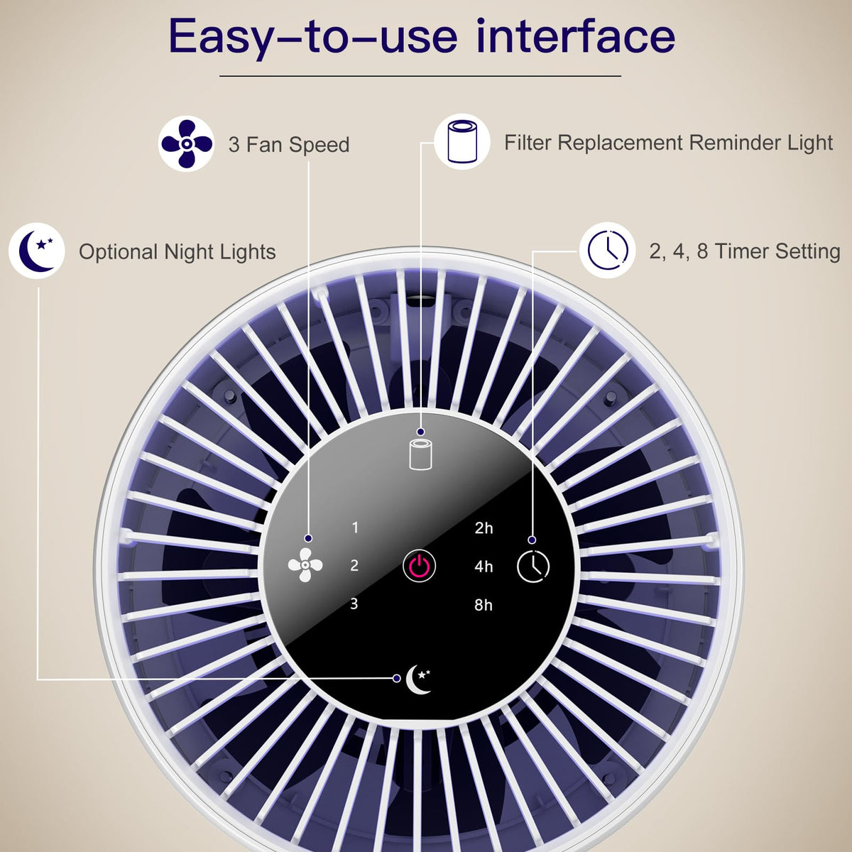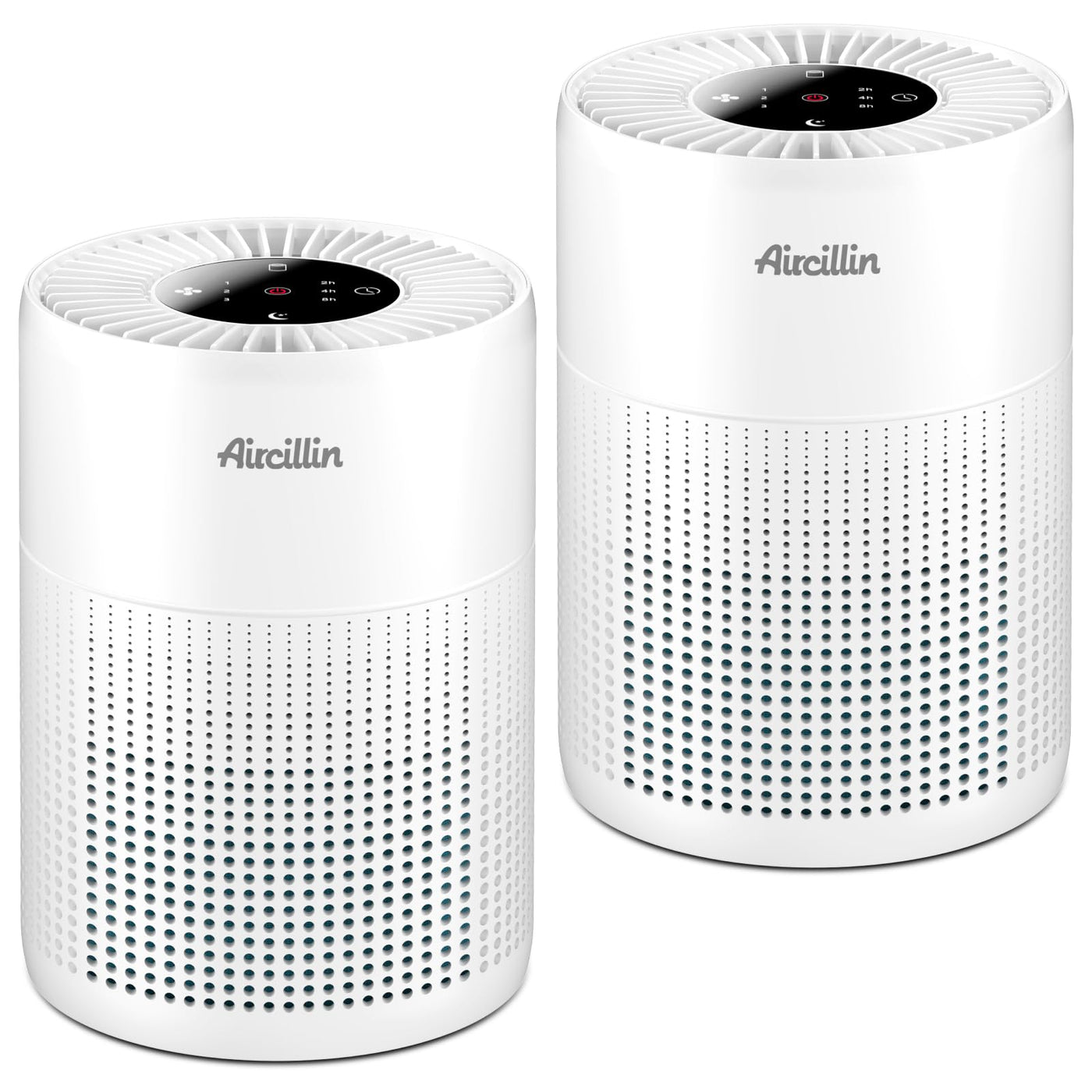 Q: What features enhance the usability of the Aircillin air purifiers?A: The air purifiers come with an LED touch screen, three wind speed settings, a timer function (2, 4, or 8 hours), and a night mode button to dim the lights, enhancing user experience and convenience.