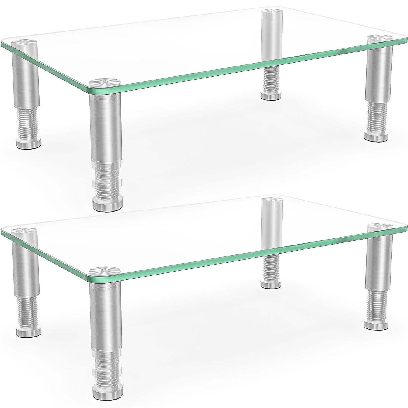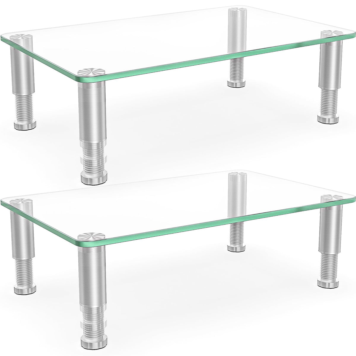 Ergonomic Range Of Application: This Large Stand Is Ideal For Monitors, Laptops And Tvs, Raising Your Screen For Better Visibility And Improved Comfort. Extensive Use: By Raising Your Screen Correctly, The Stand Can Help To Reduce The Strain And Discomfort On The Neck And Back Which Can Be Caused By Sitting Stationary For Long Periods Of Time. Compatibility Perfect For Computer Monitors, Tv'S, Streaming Devices, A/V Equipment, Printers, And More. Max Weight Capacity Up To 88Lbs. Design Personality Allows You To Maximize Existing Desk Space And Is Wide Enough For A Keyboard To Slide Under. Stainless Steel Feet - Adjustable Between 3.4 Inches And 4.9 Inches - Make It Quick And Easy To Achieve The Best Height For Your Needs Specification Fully Assembled Size: 15 X 9.5 X 3.4 Inches.Tempered Glass Size: 15 X 9.5 Inches.Tempered Glass Thickness: 1/4''.Weight: 7.6 Lbs. Feet Diameter: 1.2 Inch.