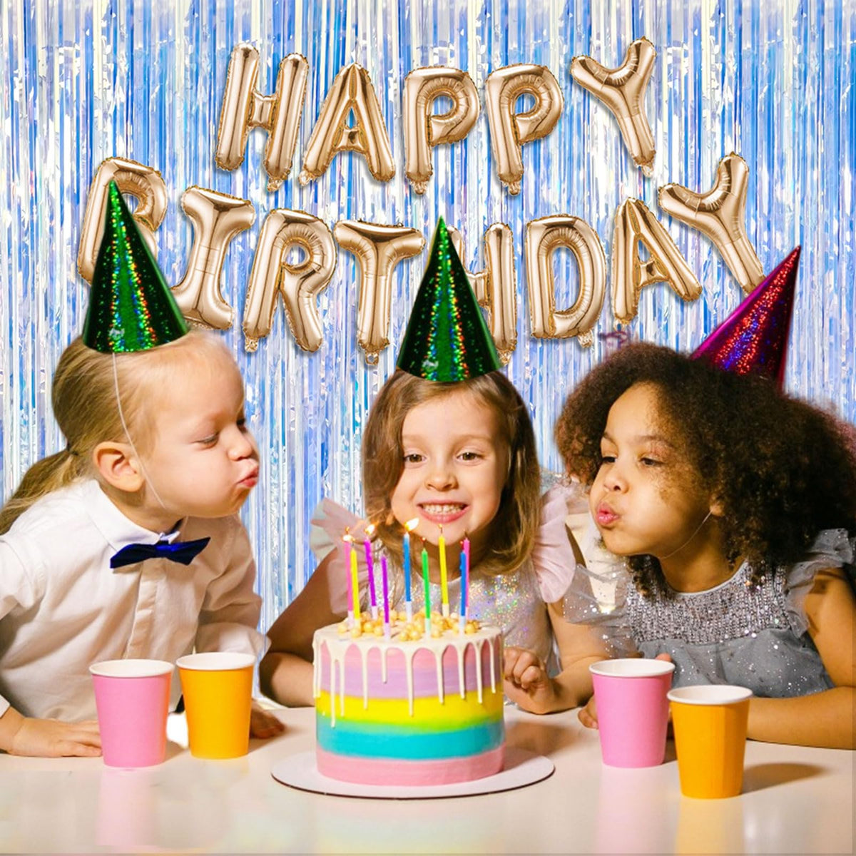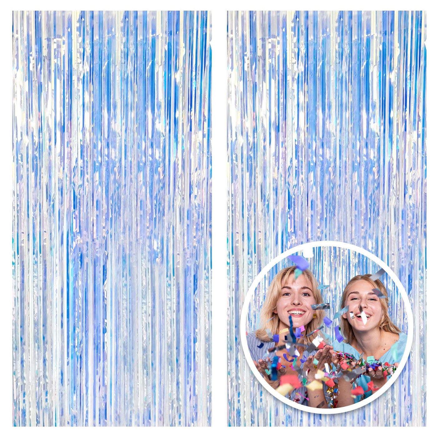 2 Pack Foil Curtain Backdrop Iridescent Metallic Tinsel Foil Fringe Curtains Photo Booth Props For Birthday Wedding Engagement B