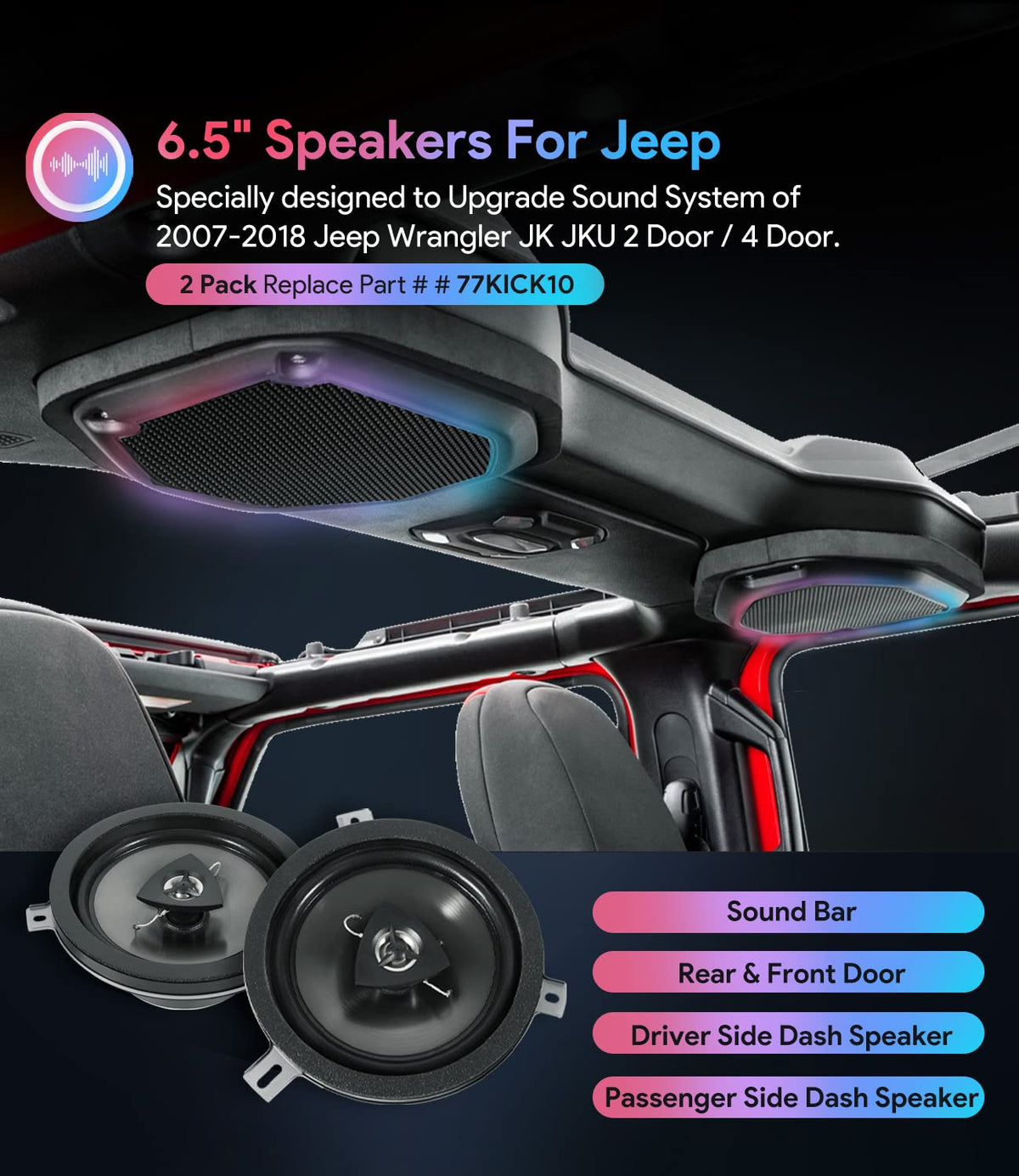 2 Pack For Mopar Kicker Speaker Upgrade 2007 2018 Jeep Wrangler Jk Jku & 2005 2018 Jeep Wrangler Dodge Commander Grand Cherokee,