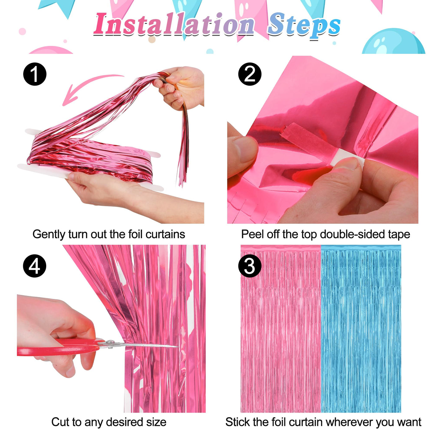 Celebrate Party With The Gender Reveal Backdrop! Quantity: 4 Pcs Size: 3.28 Ft X 7.05 Ft Colors: Pink Design: Metallic Glossy Design Features: Large Size: Can Be Cut To Length As Needed Non-Tearable: 23 M Pet Material, Lightweight And Non-Tearable Easy To Install: Comes With Adhesive Tape, No Assembly Required Use Occasions: Gender Reveal Party, Wedding, Anniversaries, Party, Birthday Warm Tips: The Photo Backdrop Come With Adhesive Paper, But Please Do Not Stick Them On Rough And Uneven Surfaces.