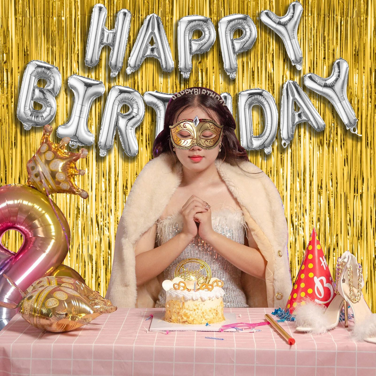 2 Pack Gold Backdrop Birthday Decorations Foil Curtain Backdrop Gold Streamers Dance Party Decorations Photo Booth Props For Bac