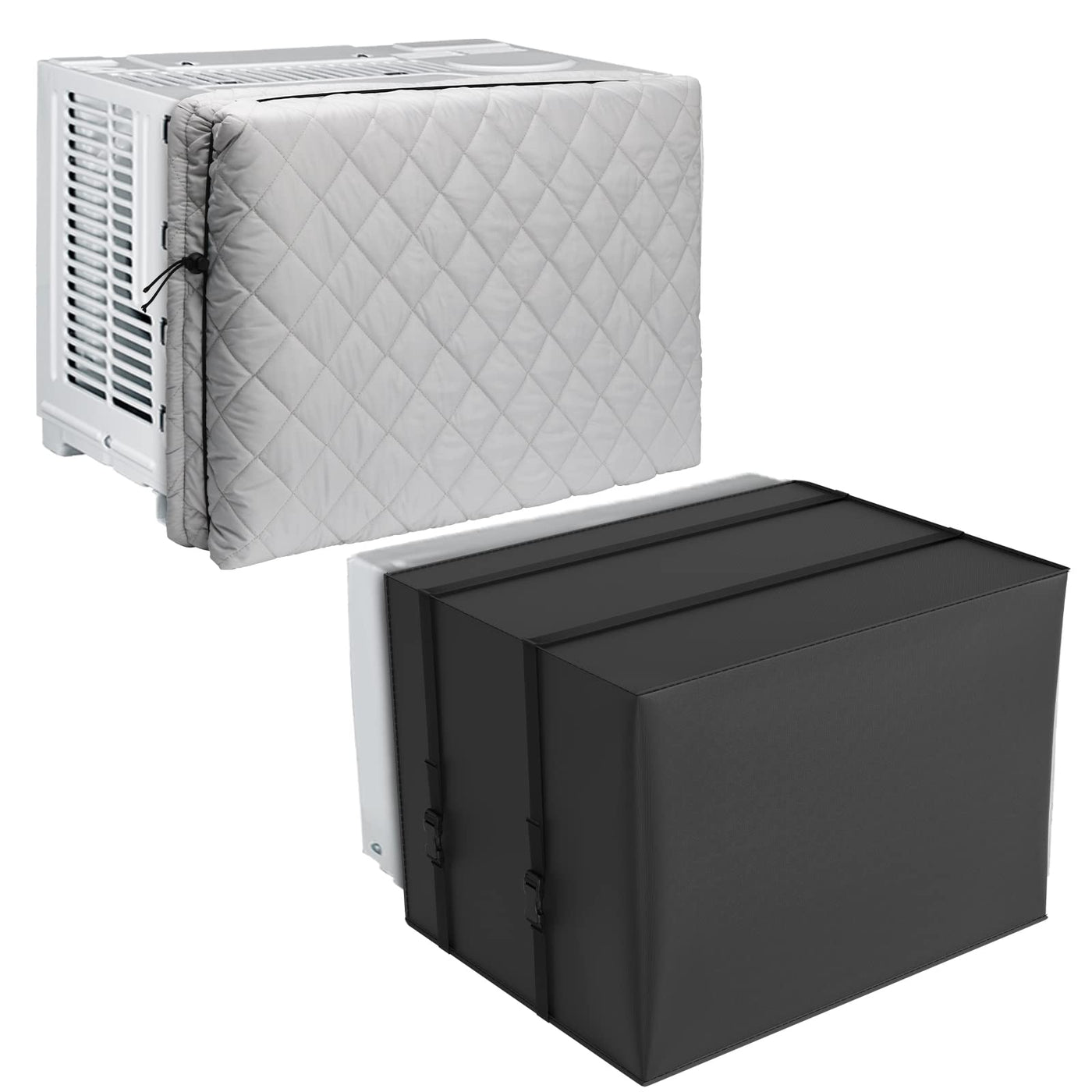 Air Conditioner Covers Prevent Anything From Getting Inside Your Ac Unit. Join Us To Give Your Unit A Good Protection And Start A New Home Life. As The Weather Starts Cooling Down In Fall And Winter, Cold Drafts Will Sneak Through Your Indoor Ac Unit. It Goes Both Ways - Heat Will Also Escape From Your House. This Makes Your Heater Work Harder To Keep Your Home Warm, Resulting In A Higher Electric Bill. Dust Will Also Build Up In Your Wall Unit When It'S Not In Use. When You Go To Turn It Back On In Spring, You'Ll Be Stuck Cleaning The Vents Before You Can Use It. Using Indoor And Outdoor Air Conditioner Cover Will Keep Your Home Warm And Your Electric Bills Low. Indoor Air Conditioner Cover Material: 210D Polyester And Cotton Dimension: 21''X16''X3.5'' Color: Gray Outdoor Air Conditioner Cover Material: 210D Waterproof Oxford Cloth Dimension: 21 X16 X15 Color: Black Tips: 1. In Order To Increase The Service Life Of Ac Unit Cover, We Suggest Clean It Regularly, And Avoid Using Bleach, Hard Bristle Brushes. 2. Measure Your Air Conditioner Unit To Ensure You Are Purchasing The Right Size Cover. 3. Please Make Sure The Window Air Conditioner Covers Completely Dry Before Storing.