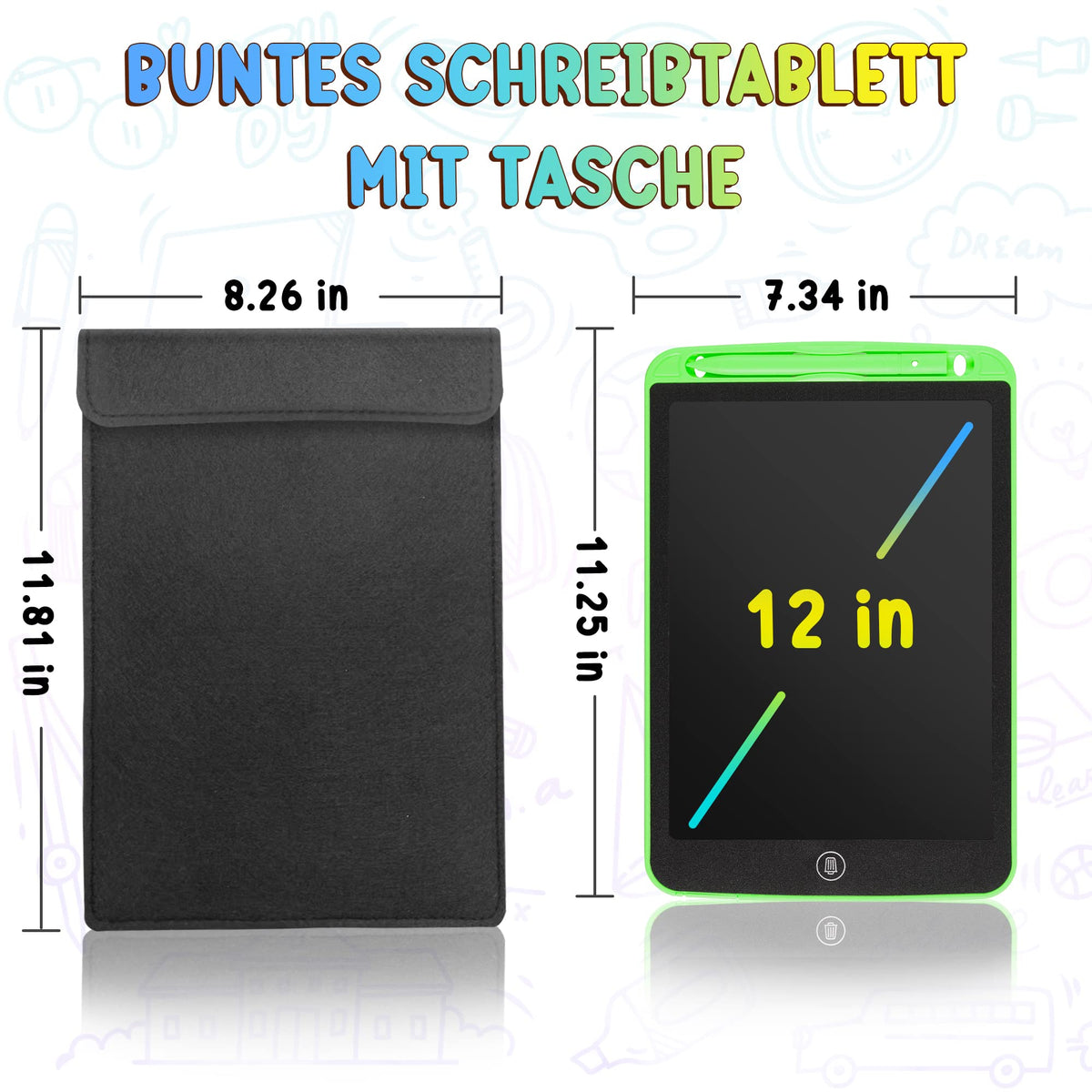 2 Pack Lcd Writing Tablet For Kids Doodle Board 12 Inch With 2 Bag, Electronic Drawing Tablet Drawing Pad, Leyaoyao Drawing Boar