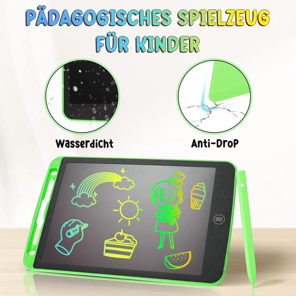 This Is The Product To Help Children Show Their Inspiration. Kids Drawing And Writing Kids Will Play With The Product. Most Children Enjoy In Writing And Drawing, Even If They Are Scribbling. No Paper Waste, And You Don'T Need Worry About Them. Teaching By The Tools This Tablet Will Help You When You Want To Explain Simple Things To Your Child. This Is The Best Early Education Product For Parents And Children. Office Recording This Tablet Will Help You When You Want To Explain Simple Things To Your Child. This Is The Best Early Education Product For Parents And Children. Features That You Are Loving! 1.12Inch Large Lcd Colorful Screen To Show Your Children'S Imagination. Flexible Liquid Crystal Writing Technology So You Don'T Need To Worry About Scratching This Screen; 2.One Button Clearing Is More Efficient And Faster. No Need To Erase By Hand. No Dust, No Pigment, Absolutely Safe For Children; 3.Ultra-Thin Design Makes It Light To Take It Anywhere You Want! So You Can Easily Put It In Your Bag And Use It Anytime In Restaurants, Classrooms, Beds, Etc. 4.Added Smart Lock Function. Just Lock It And You Don'T Have To Worry About The Previous Work Being Accidentally Cleared And Continue Your Child'S Imagination; 5.Ultra Low Power Consumption Is Durable. You Don'T Need To Charge This Broad, It Has A Built-In Cr2025 Battery. The Battery Is Replaceable And Can Be Used Normally For 12 Months At A Time; 6.Come With Stylus And Lanyard That Writes Smoothly And And You Dont Need To Find A Pen When You Want To Write And Draw. No Longer Need Other Accessories;